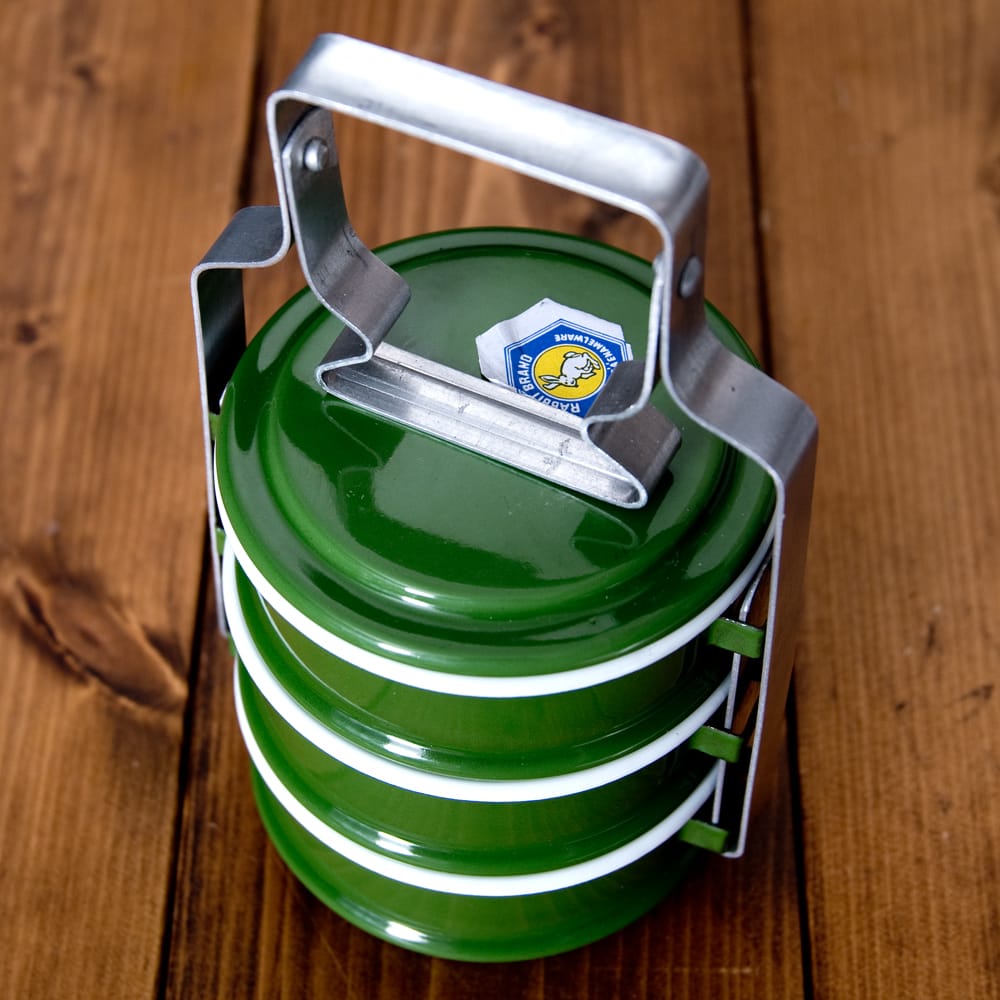 あたたかみのあるレトロなデザインがたまらない。タイからやってきたホーローのお弁当箱です。お弁当箱の構造としては、インドのステンレス製お弁当箱と同じですが、ホーロー製なので雰囲気は全く異なります。