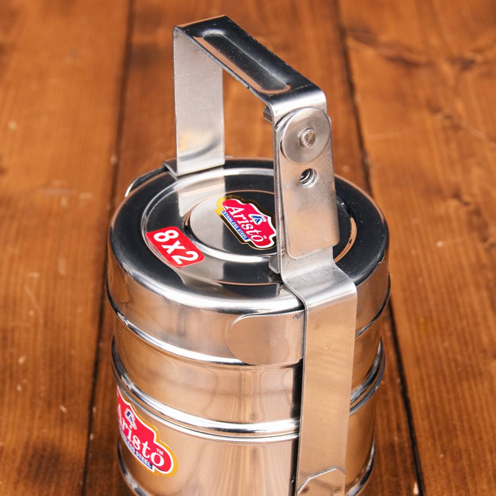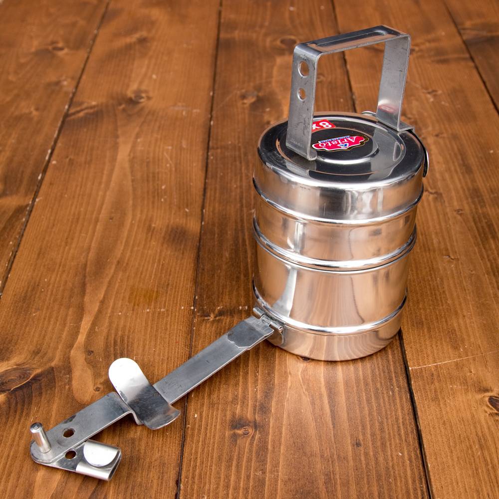 鍵が掛かる!インド2段ボンベイ弁当箱 ダッバーワーラー仕様【直径:約10cm 高さ:約19.5cm】 通販店