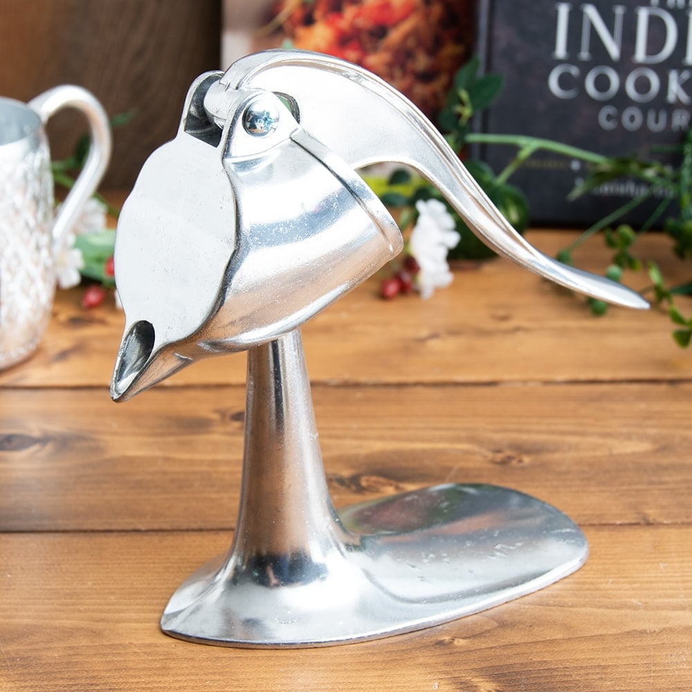 テーブルにおいて使用するスタンドタイプのフルーツジューサーです。 レモン、オレンジ、グレープなどを押し絞ってお手軽に しぼりたてジュースが楽しめます。 ハンドルが大きいので手が痛くなりにくく、軽い力で絞ることが出来ます。フルーツの他に、じゃがいもやニンニク、ナッツなどを 押しつぶすのにも便利です。 フルーツや食材の皮が注ぎ口から出てしまわないように押さえておく 格子上のパーツが付属します。着脱式なので洗いやすく衛生的です。