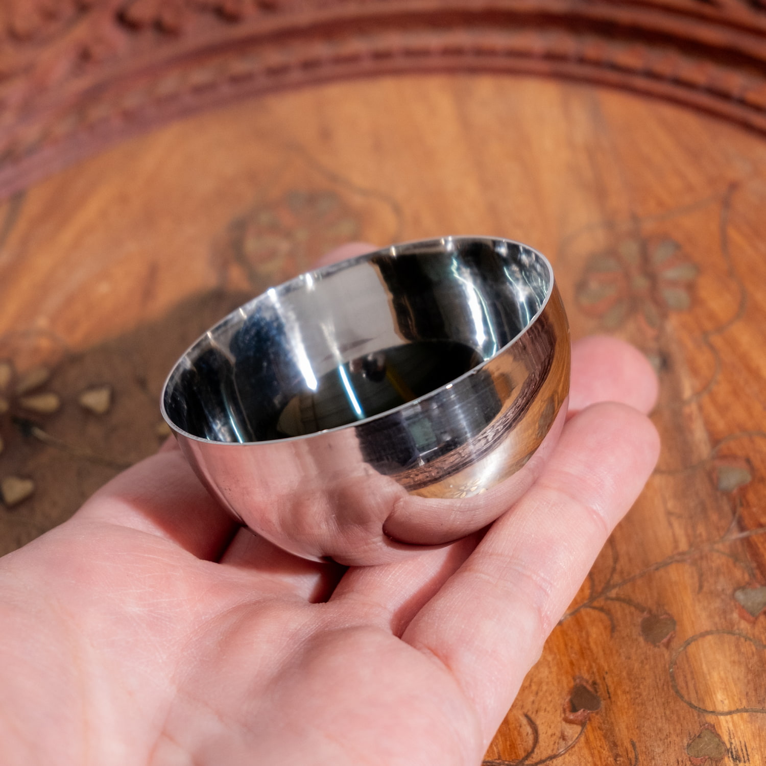 インドでカレーを食べるときに使うステンレス製の小皿。小皿の中にカレーやヨーグルトを入れて食べますが、薬味や調味料を入れておくのにも便利です。色々なサイズを取り揃えましたので、用途に合わせてお選びください。こちらはとても小さいサイズなので、チャトニやアチャールを盛り付けるのにちょうど良さそうな大きさです。イメージとして料理名付きでネーミングしてみましたが、もちろんお好みの使い方ができます。■衛生的です