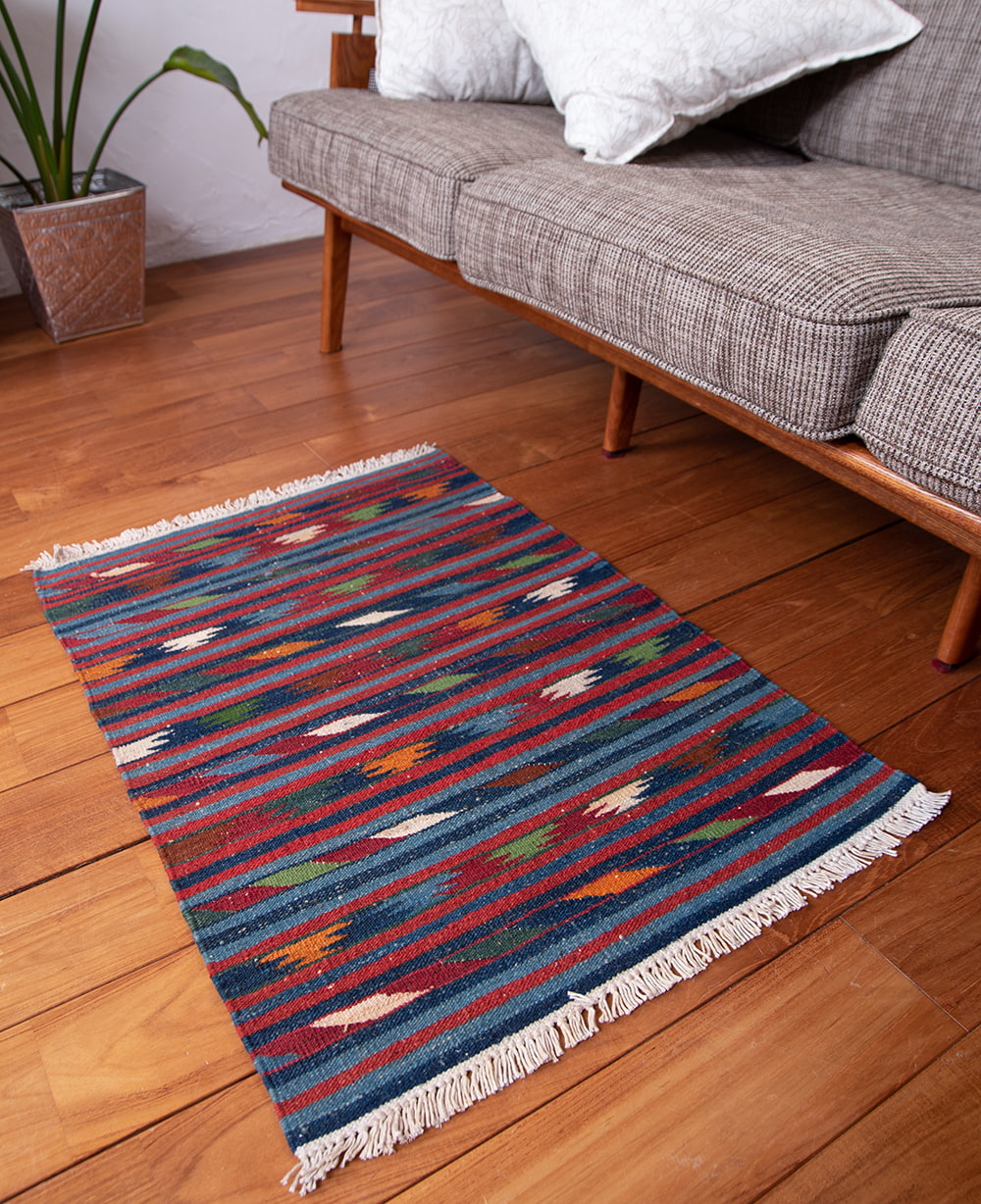 HANDLOOM RUG コットン キリム ラグ【約60cm×約42cm】