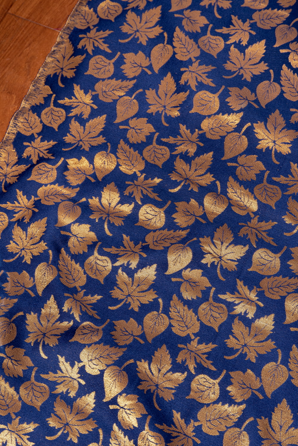 〔1m単位切り売り〕〔各色あり〕インドの伝統模様布 ゴージャスな金糸落ち葉模様〔幅約121cm〕の評価 (合計:4件)