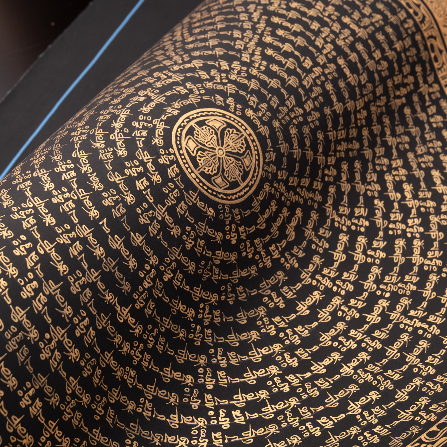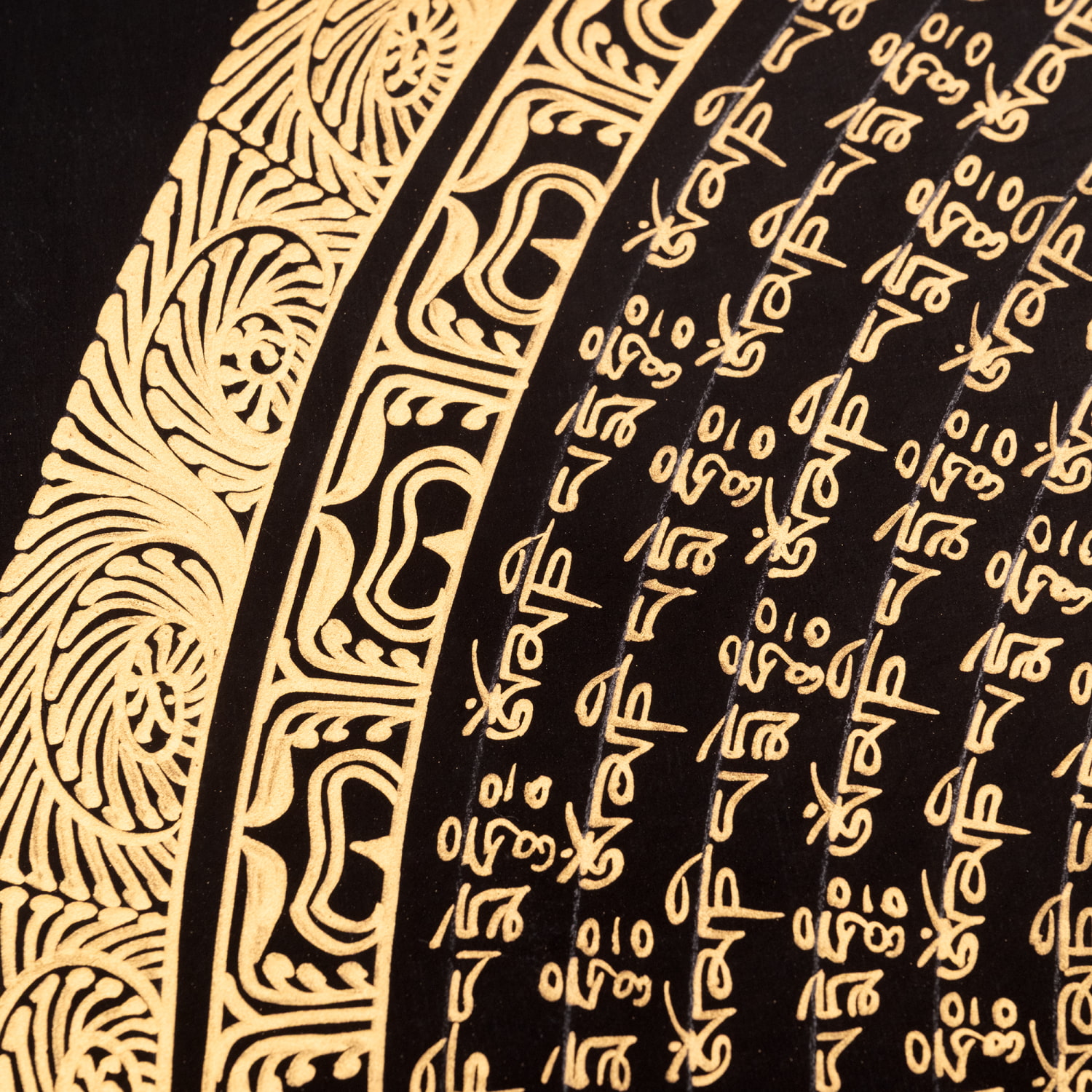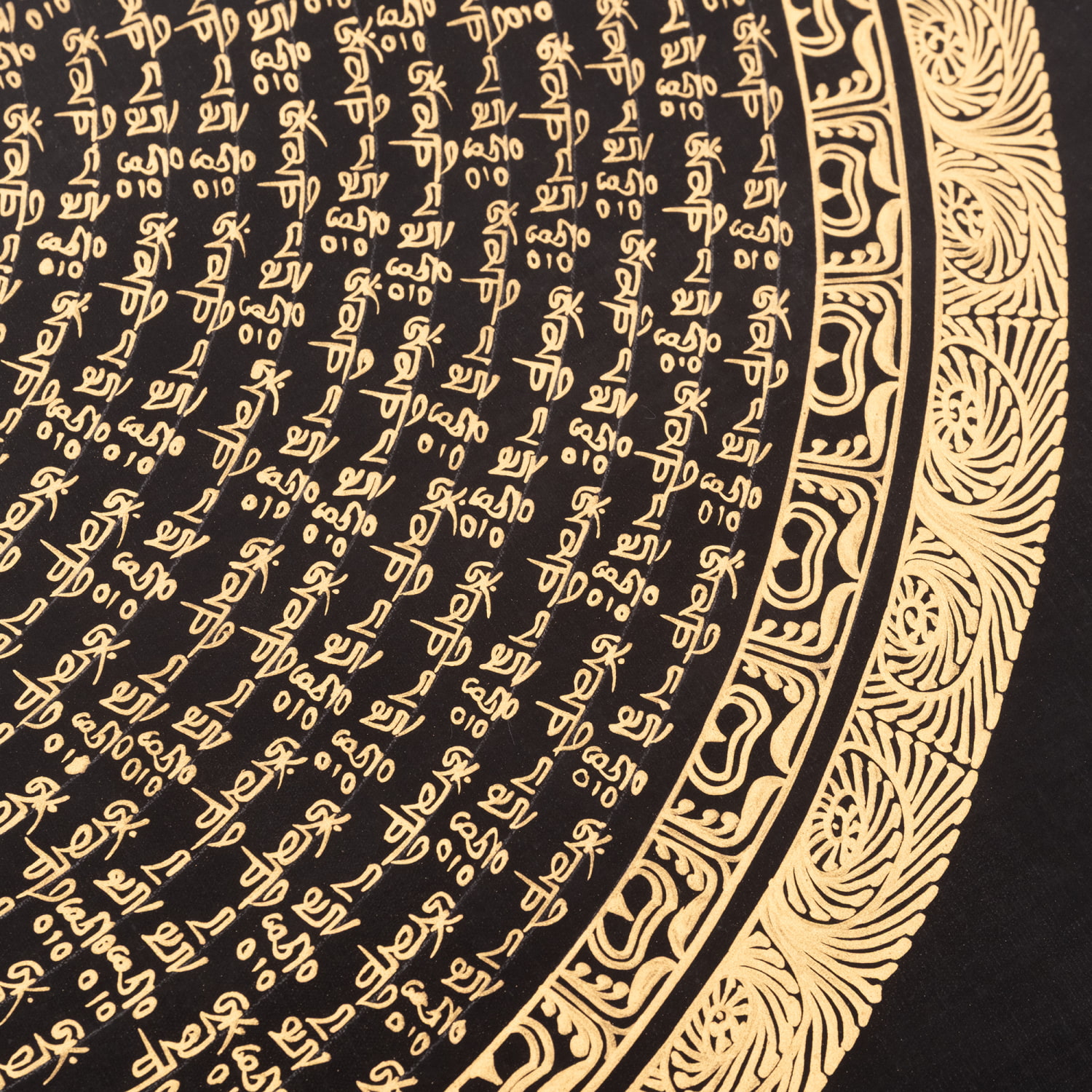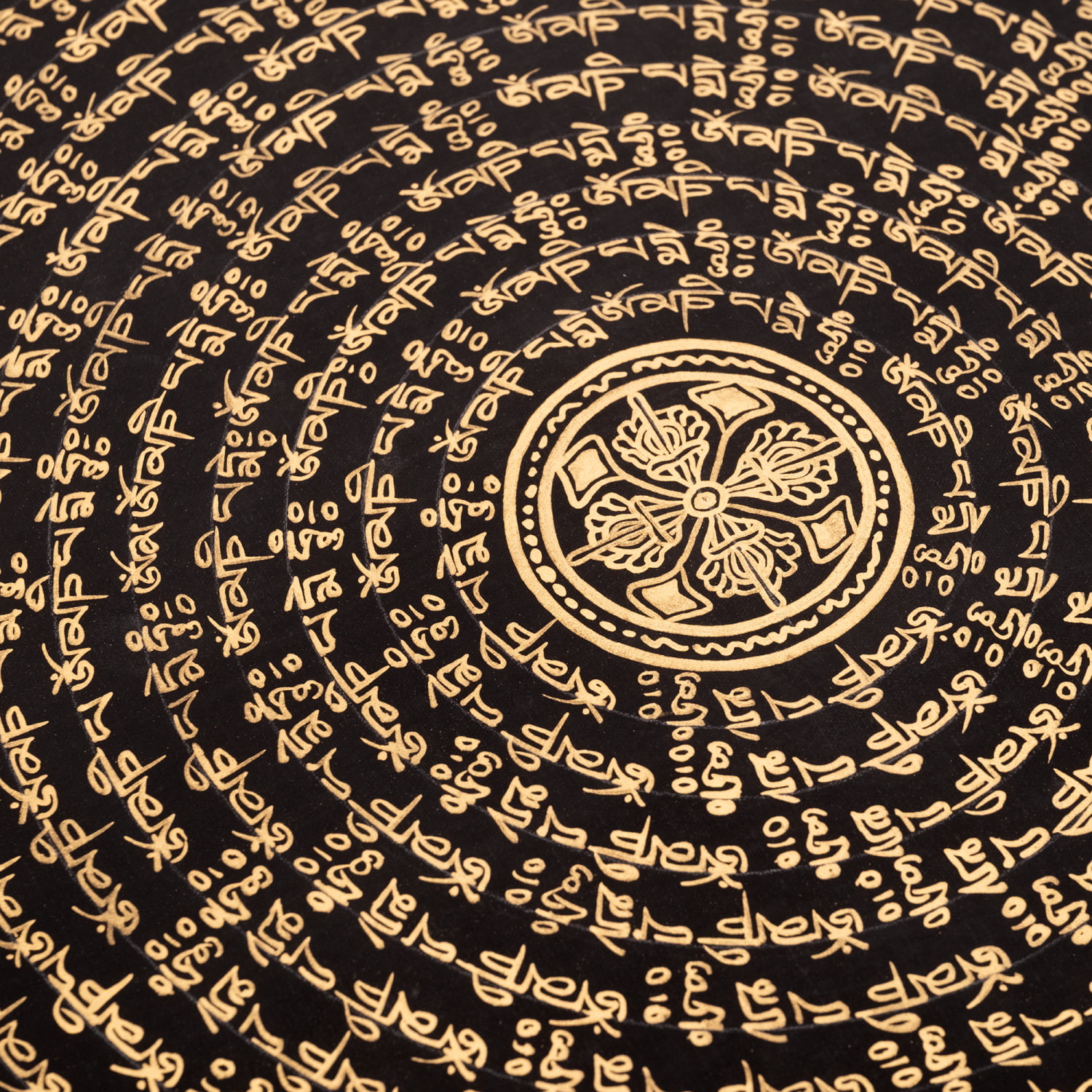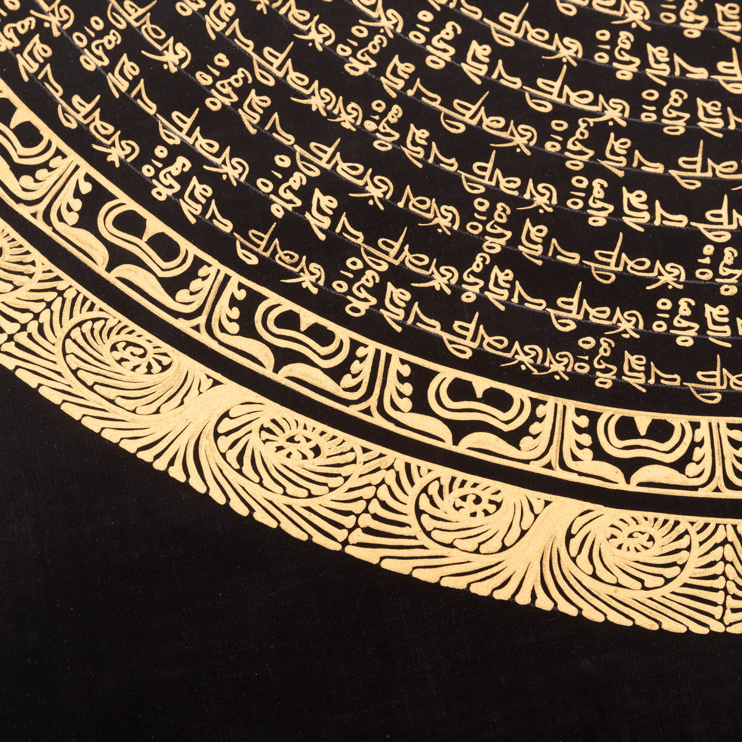 仏を表わす文字を仏教では種子(しゅじ)といいます。仏や菩薩の姿を直接描かずに、それぞれの仏を象徴する「種字」を配置した曼荼羅です。密教における曼荼羅の一つで、形ではなく文字や音の象徴性を通じて仏とつながる方法であり、瞑想や修行において重要な役割を果たします。