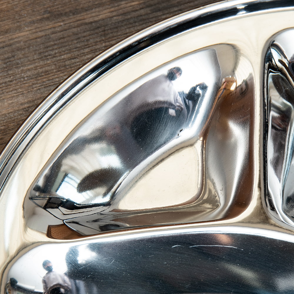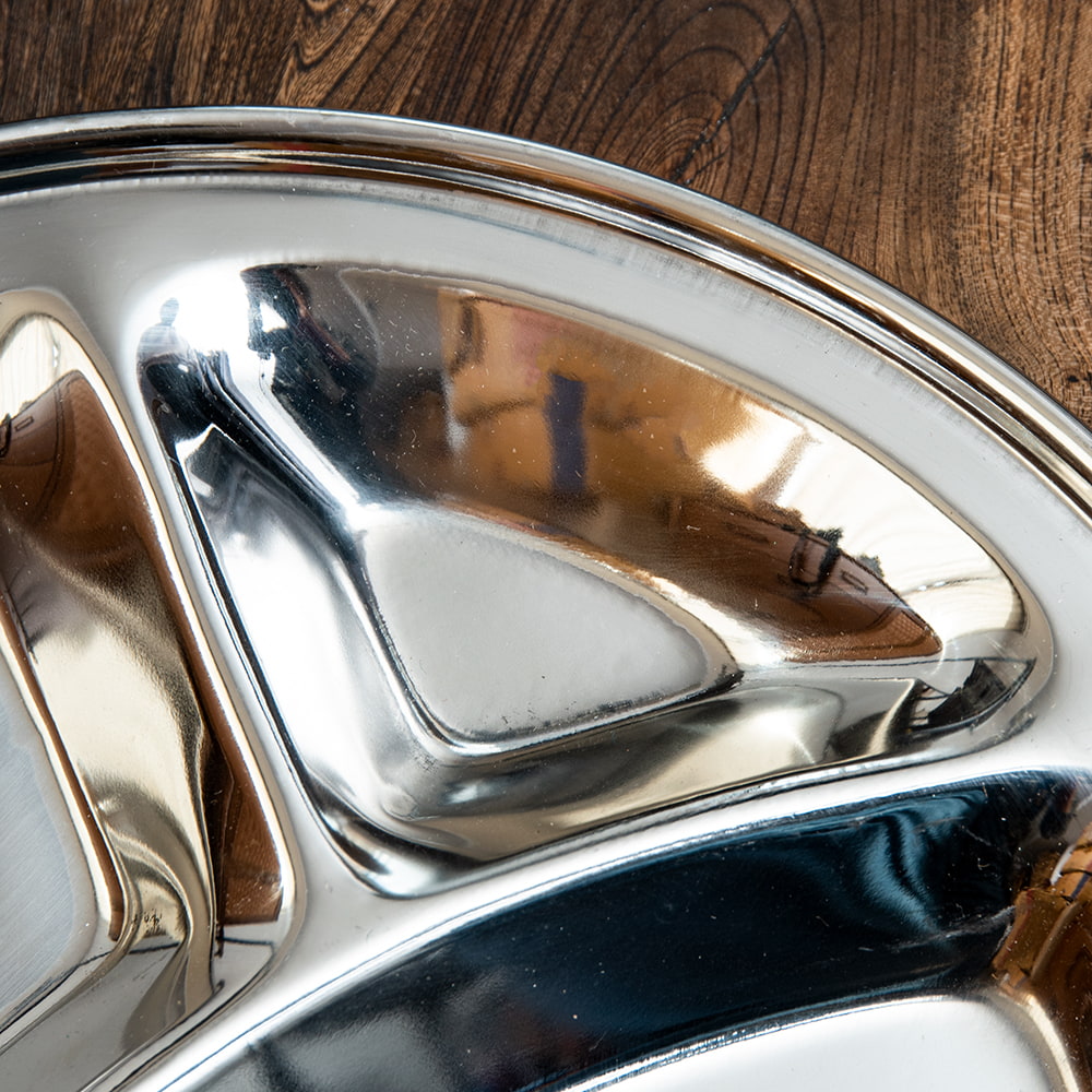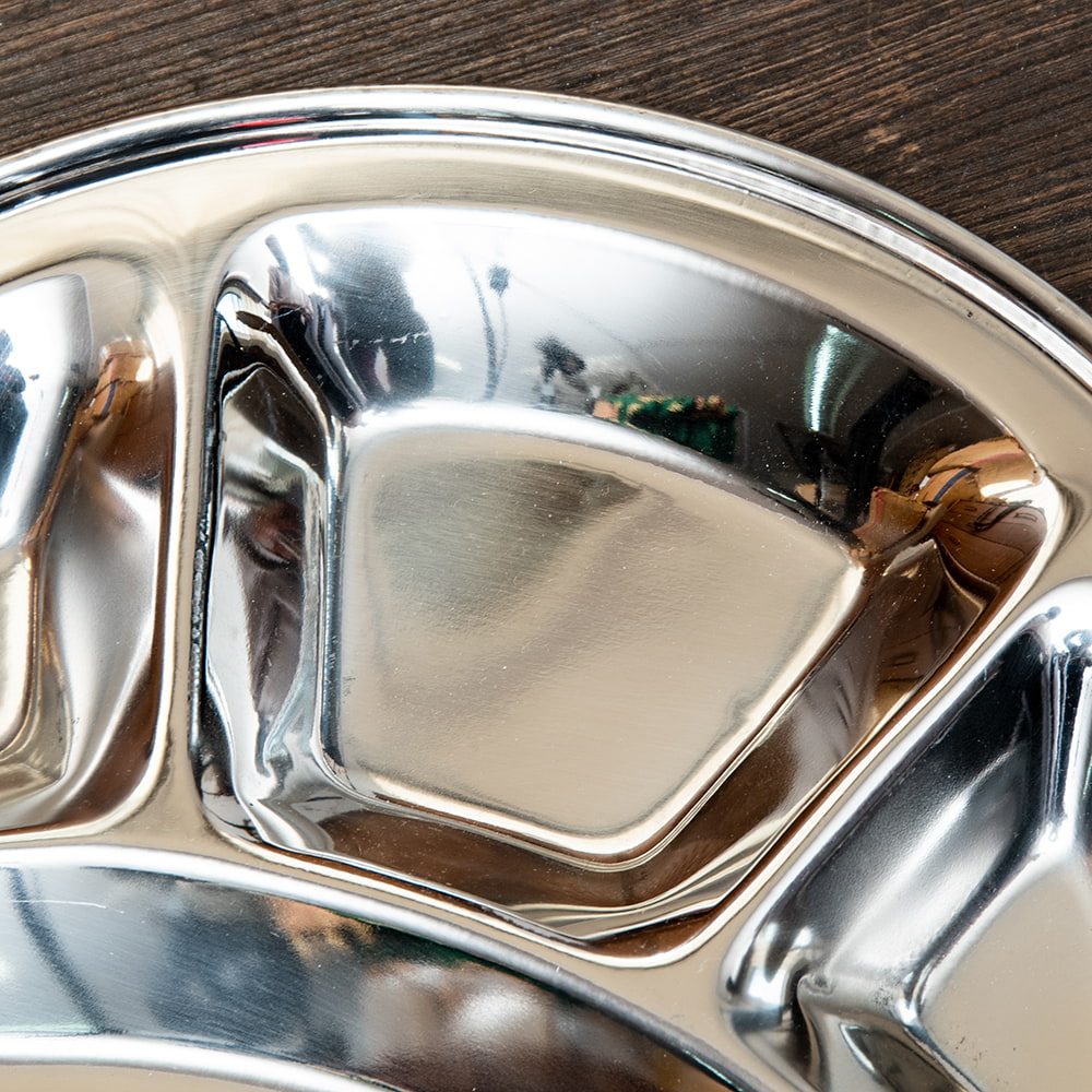 インドでカレーを食べるときに使うステンレス製の丸皿。一番大きな部分にご飯やチャパティーを入れ、小さなところにはカレーやヨーグルトなどを入れて使用します。■マサラ料理の神秘