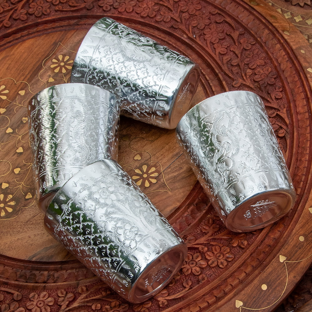 タイならではの美しい装飾がデコボコのエンボスになって入っている美しいコップです。光の加減でエンボスが輝き、とても存在感があります。