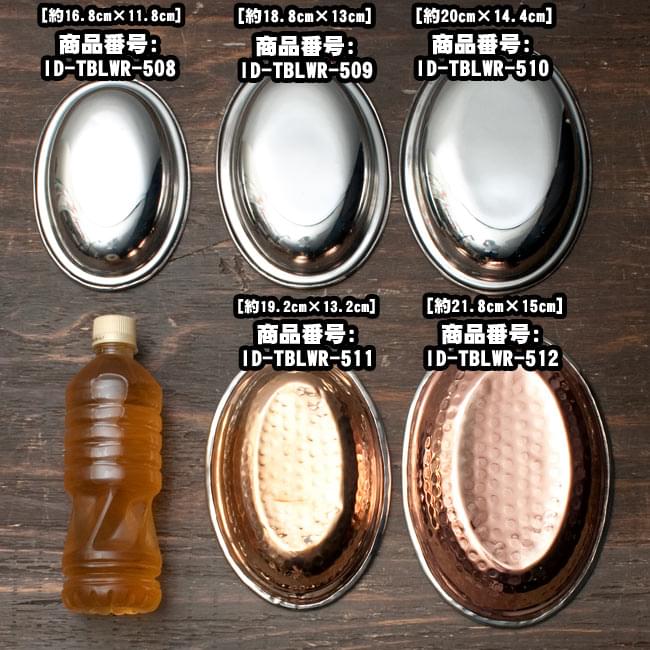 ![【送料無料・2個セット】【冷めにくい!二層式】インドのステンレスと銅製 オーバルプレート[約18.5cm×13cm] 3 - 拡大写真です](https://www.tirakita.com/Zakka/Photos/set_ag_id_tblwr_511_3b.jpg)