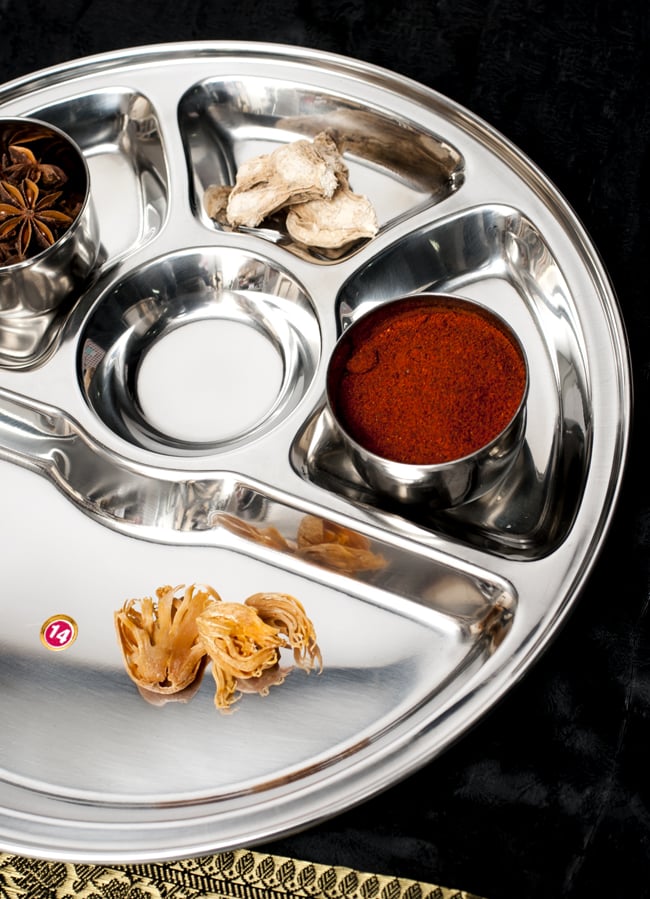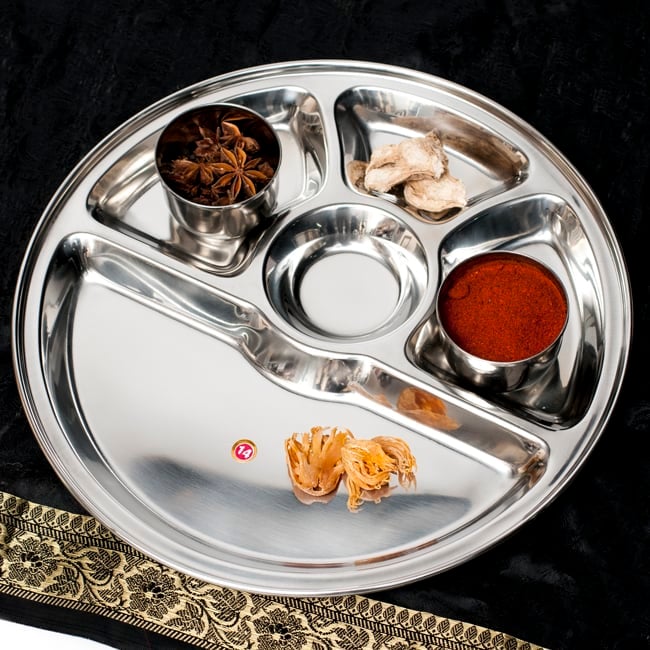 インドのレストランや家庭で広く使われているステンレス製のランチプレート。丈夫で長持ち、重厚感あるステンレス製ですので長くお使いいただけます。