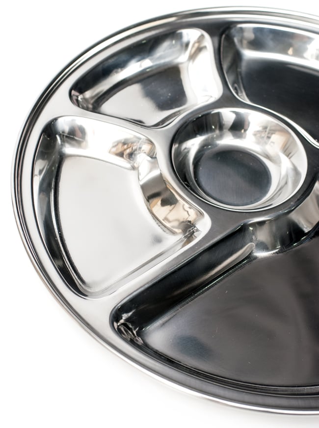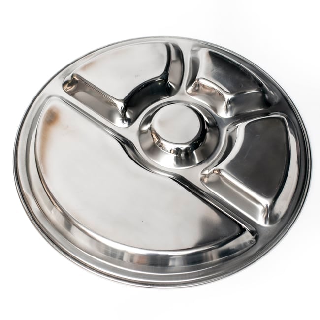 【送料無料・3個セット】5分割カレー丸皿[直径約32cm]の商品写真 2枚目 インドで日常的に使われているプレートです。