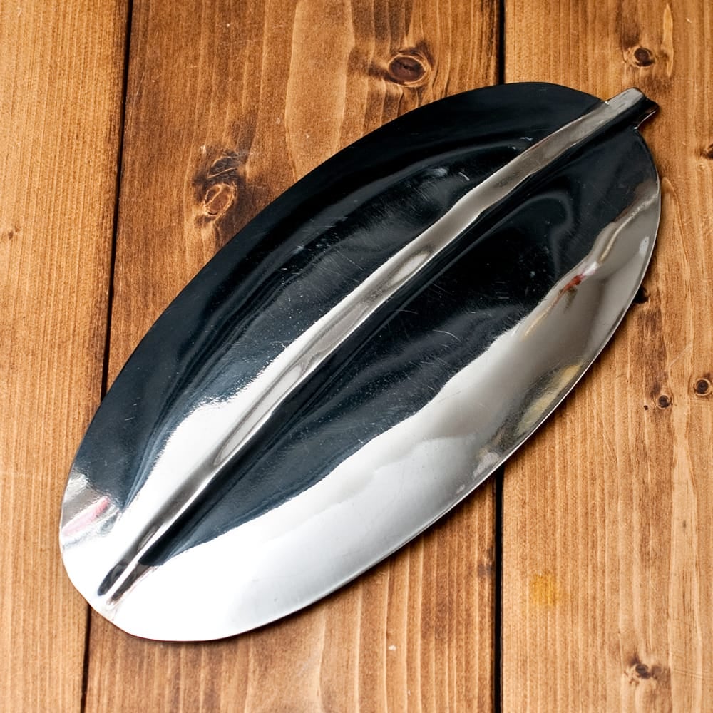 ![【送料無料・3個セット】インドのステンレス製 バナナリーフプレート[約26.5cm] 2 - バナナリーフの形をした、ステンレス製の珍しい食器です。南インド料理はもちろん、さまざまな料理へオススメです!](https://www.tirakita.com/Zakka/Photos/set_ag_id_tblwr_672_2b.jpg)