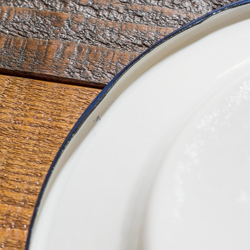 大都市ムンバイの雑踏のなかで見つけたホーロー皿が入荷しました。北欧を始めとしたヨーロッパ圏のイメージの強いホーローですが、インドの琺瑯はやはりインド的。塗りのムラや細かな欠けにハンドメイドの暖かみを感じる、新品なのにアンティークな仕上がりです。金属にガラス質の釉薬を高温で焼き付けているため、腐食に強くかつ軽量であるという質と美観を兼ね備えた琺瑯皿。日々の暮らしを彩るのにぴったりの一枚です。