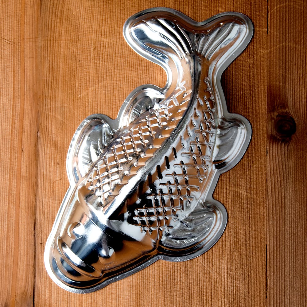縁起物の鯉の形をした、お菓子用の型です。※入荷時期により、アルミ光沢感がマットタイプの場合もございます。