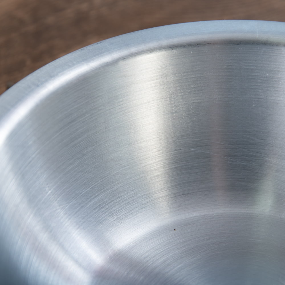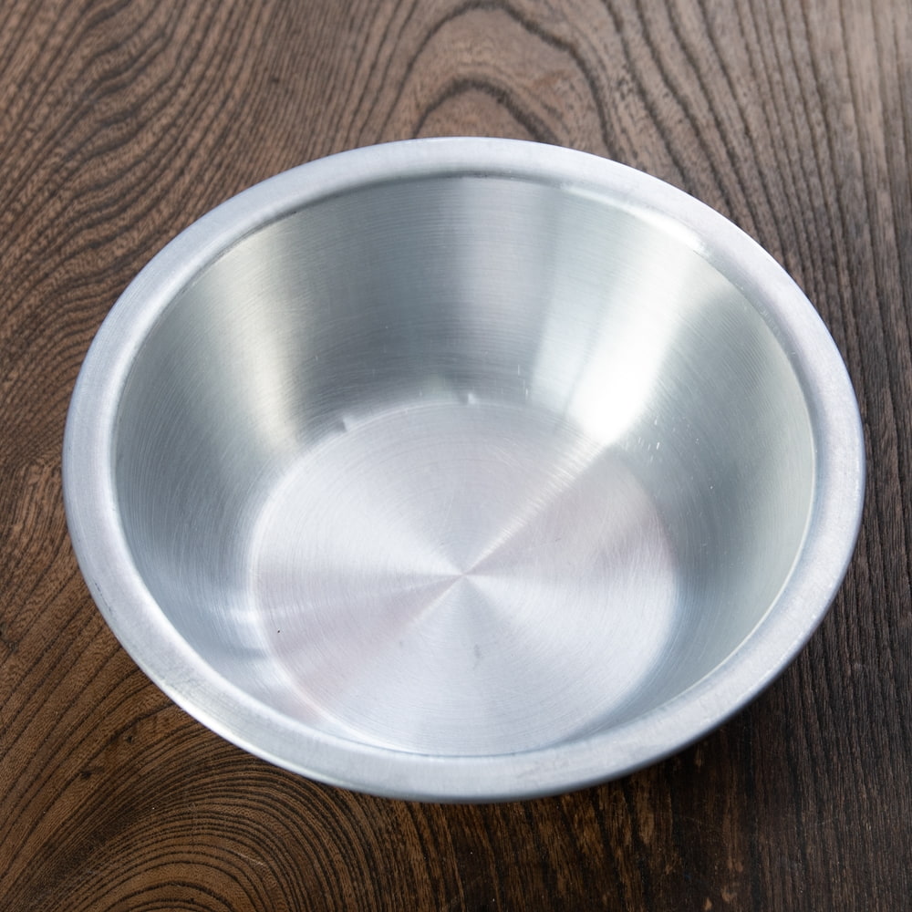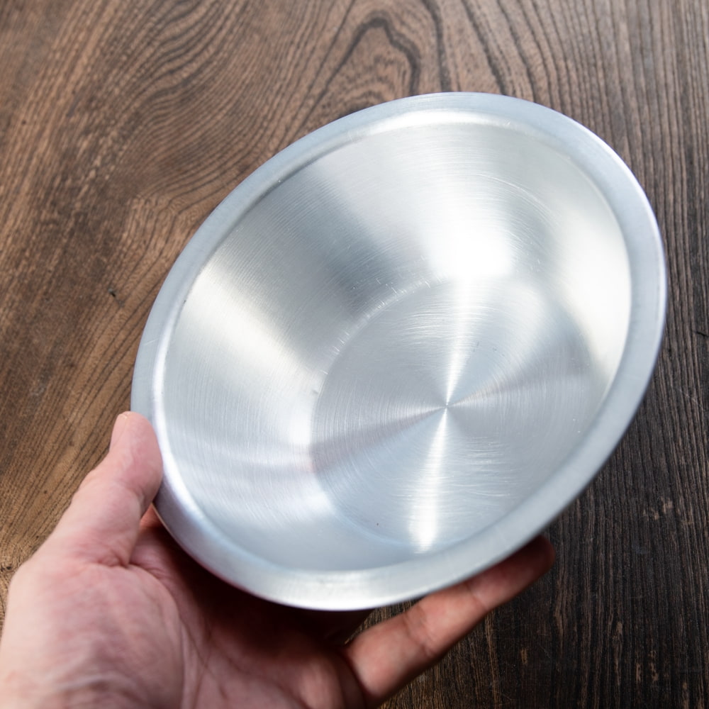 タイからやってきた、アルミボウルです。調理用のミキシングボウルとしての用途以外にも、ご飯やオカズ、サラダボウルなど食器としてご使用いただけます。アルミ独特の削り出しと、光沢感が味わい深く、シンプルながらもどこかぬくもりを感じる食器です。
