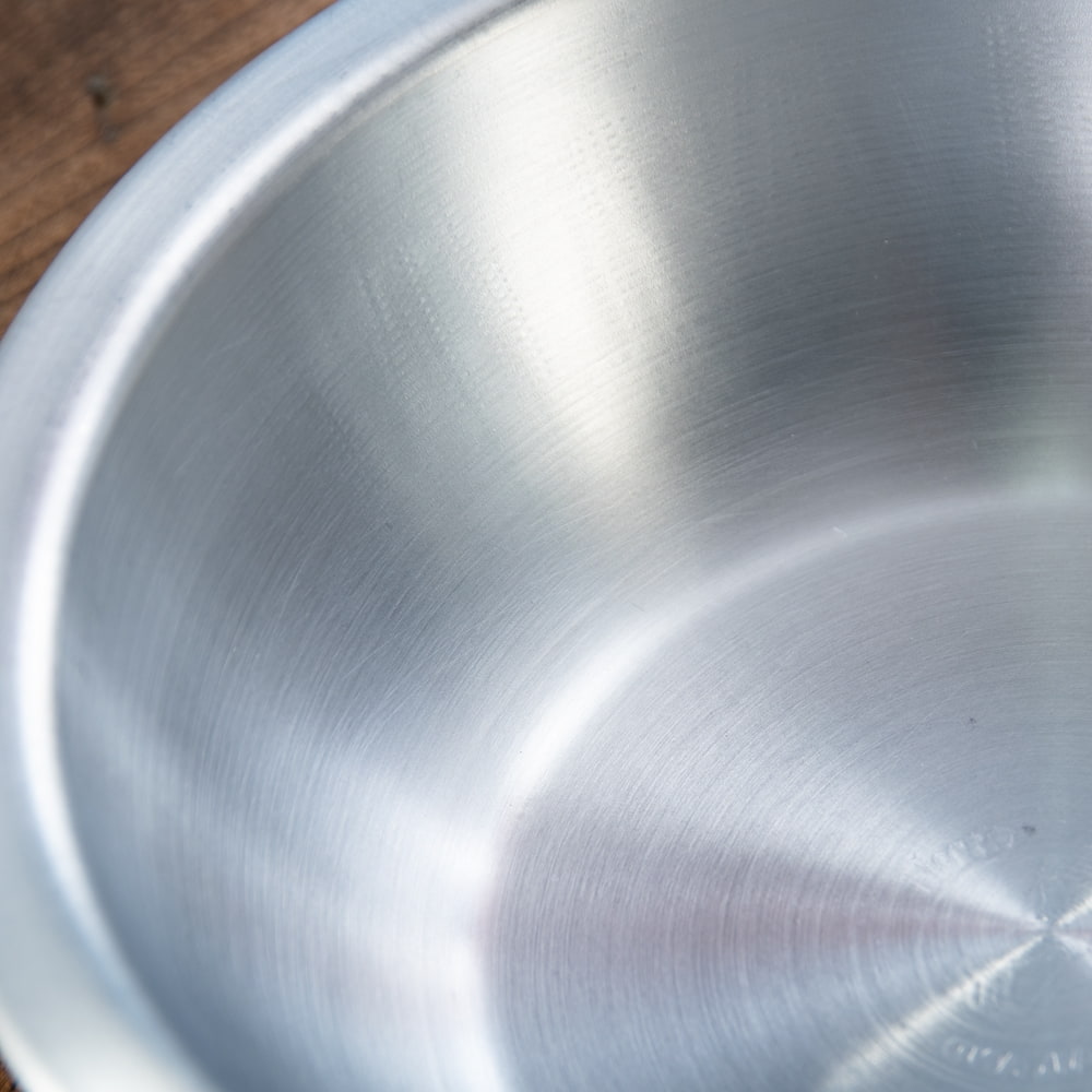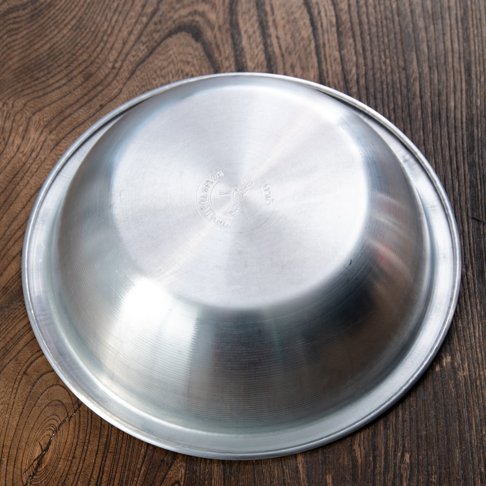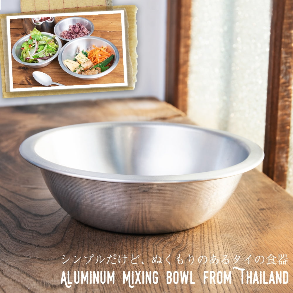 タイからやってきた、アルミボウルです。調理用のミキシングボウルとしての用途以外にも、ご飯やオカズ、サラダボウルなど食器としてご使用いただけます。アルミ独特の削り出しと、光沢感が味わい深く、シンプルながらもどこかぬくもりを感じる食器です。