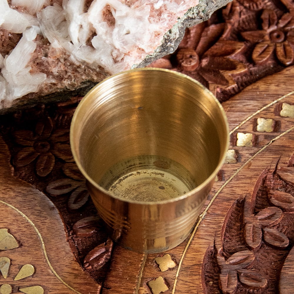 インドの礼拝用 ブラス製 プージャグラス カップ 高さ:約4cm x 5個
