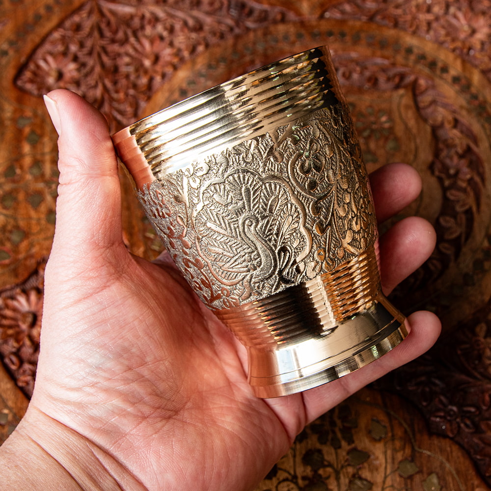 高級感のある ブラスのゴブレット ピーコック 高さ10cm x 6個