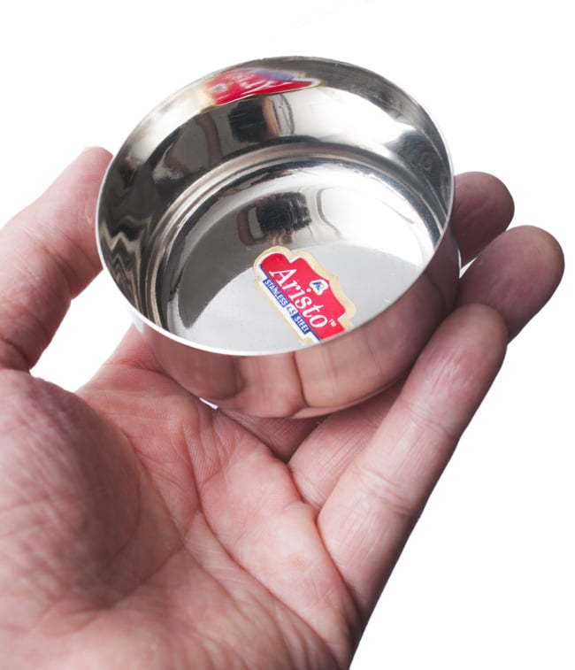 インドでカレーを食べるときに使うステンレス製の小皿。小皿の中にカレーやヨーグルトを入れて食べますが、薬味や調味料を入れておくのにも便利です。色々なサイズを取り揃えましたので、用途に合わせてお選びください。こちらは少し小さめ〜中くらいのサイズ。とても使いやすい大きさです。カレーはもちろん、ヨーグルトの盛り付けなどにもぴったりです。イメージとして料理名付きでネーミングしてみましたが、もちろんお好みの使い方ができます。■衛生的です