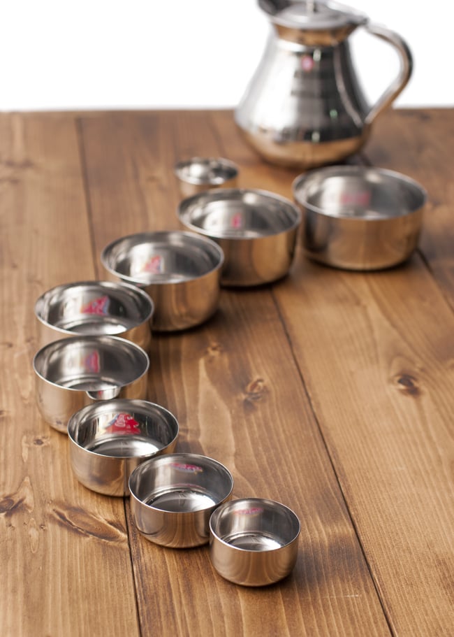 インドでカレーを食べるときに使うステンレス製の小皿。小皿の中にカレーやヨーグルトを入れて食べますが、薬味や調味料を入れておくのにも便利です。色々なサイズを取り揃えましたので、用途に合わせてお選びください。こちらはカトリとしては大きいサイズ。インディカ米をドサッと盛り付けりしたら楽しそう!イメージとして料理名付きでネーミングしてみましたが、もちろんお好みの使い方ができます。■衛生的です