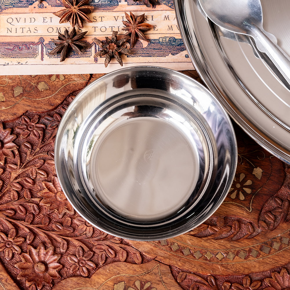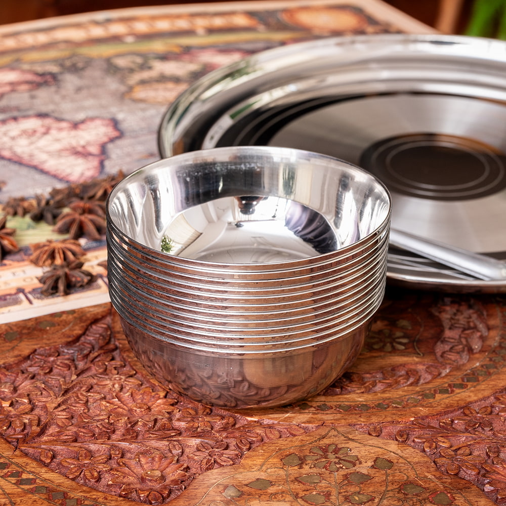 インドの暑い気候でもステンレス製の食器は衛生的で清潔に保てるため、非常に重宝されています。ステンレスは丈夫で臭い移りも少ないので、毎日安心して使うことができます。陶器の食器と比べて、割れる心配もなく、軽くて扱いやすいのも魅力です。■インドの人々に愛されるステンレス製食器