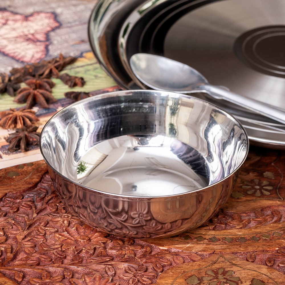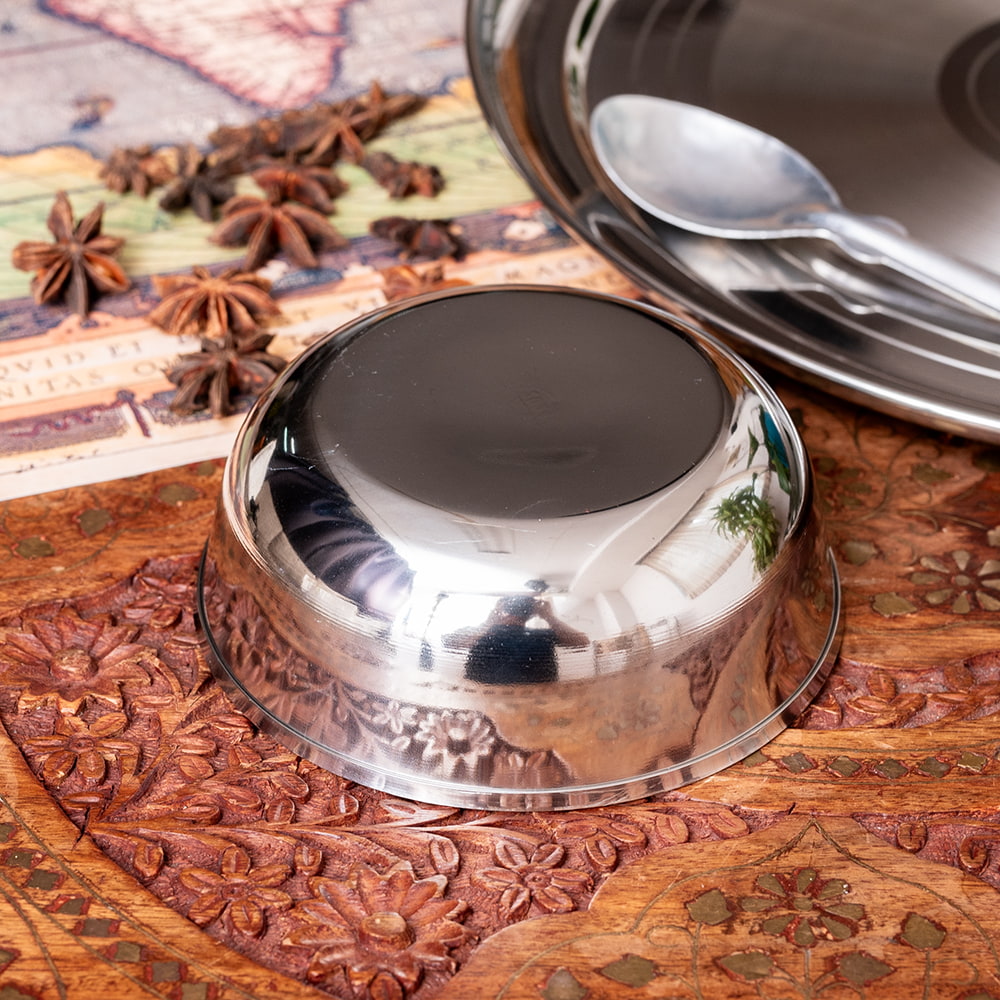 インドの暑い気候でもステンレス製の食器は衛生的で清潔に保てるため、非常に重宝されています。ステンレスは丈夫で臭い移りも少ないので、毎日安心して使うことができます。陶器の食器と比べて、割れる心配もなく、軽くて扱いやすいのも魅力です。■インドの人々に愛されるステンレス製食器