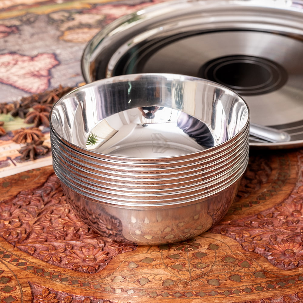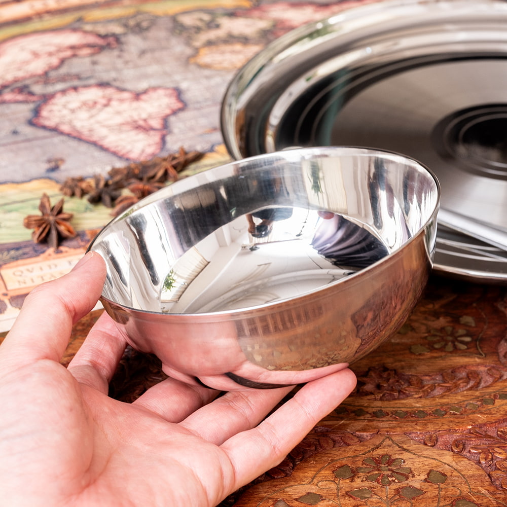 インドの暑い気候でもステンレス製の食器は衛生的で清潔に保てるため、非常に重宝されています。ステンレスは丈夫で臭い移りも少ないので、毎日安心して使うことができます。陶器の食器と比べて、割れる心配もなく、軽くて扱いやすいのも魅力です。■インドの人々に愛されるステンレス製食器