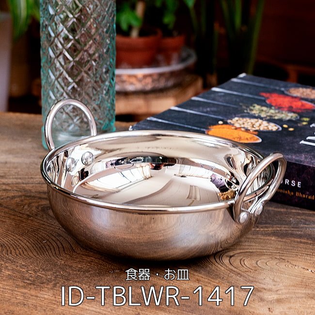 カダイもさまざまな物がありますが、こちらはしっかりとした厚みのある高級仕様。持った際にずっしりとして品質の良さを感じられます。厚みがあるので、提供した料理も冷めにくく美味しくお召し上がりいただけます。周りの風景を映し出す、美しい鏡面仕上げのステンレス。シンプルなので、カレーなどのインド料理をはじめとして、さまざまな料理と調和し、より美味しく見えるよう引き立たせてくれます。