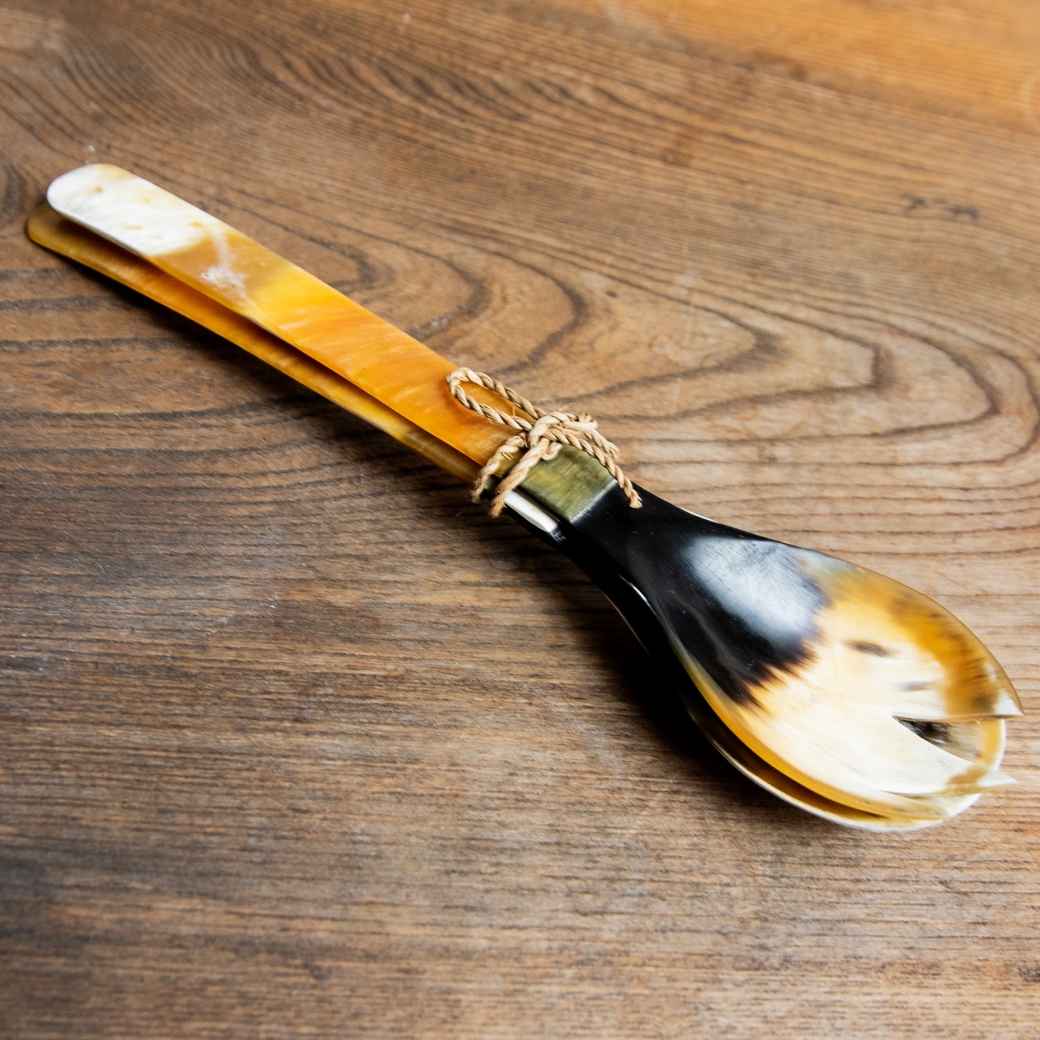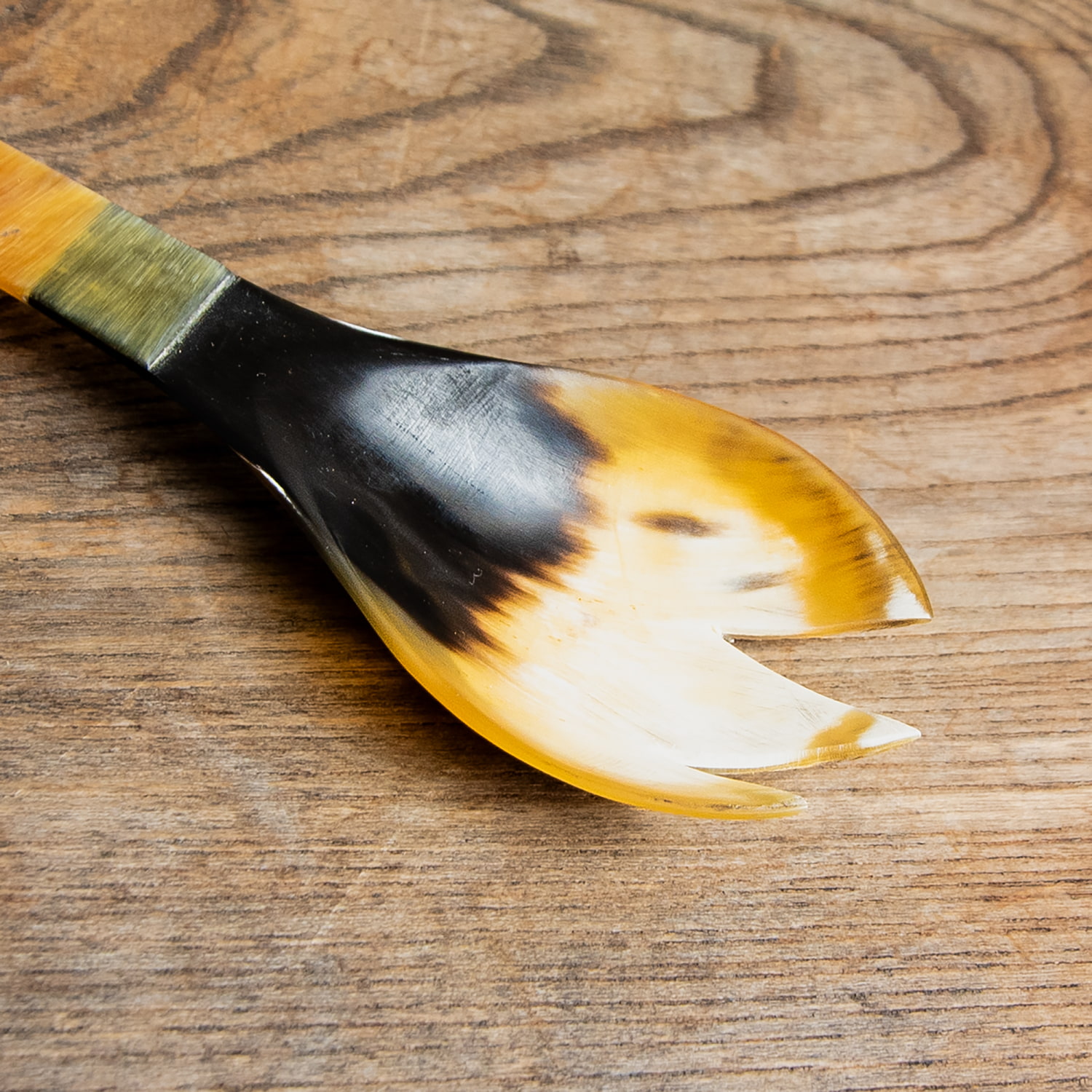![【3個セット】水牛の角のサラダサーバー キャトルホーン 美しいべっ甲模様[約25cm×6cm] 8 - よく見ると二枚の素材をぴったりと組み合わせています。丁寧な作りですね](https://www.tirakita.com/food3/Photos/set_food_1708_8b.jpg)