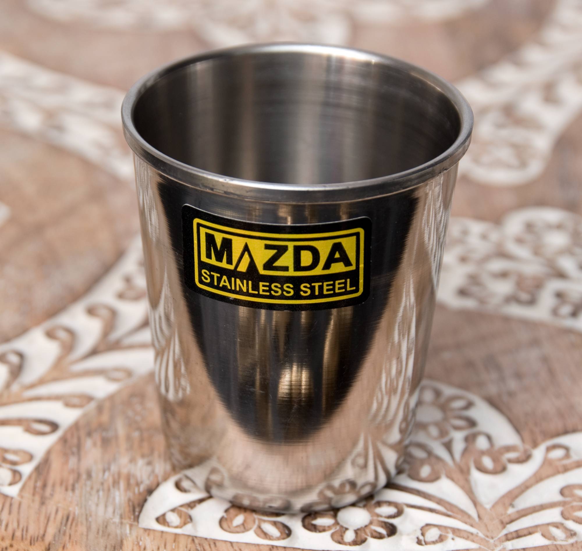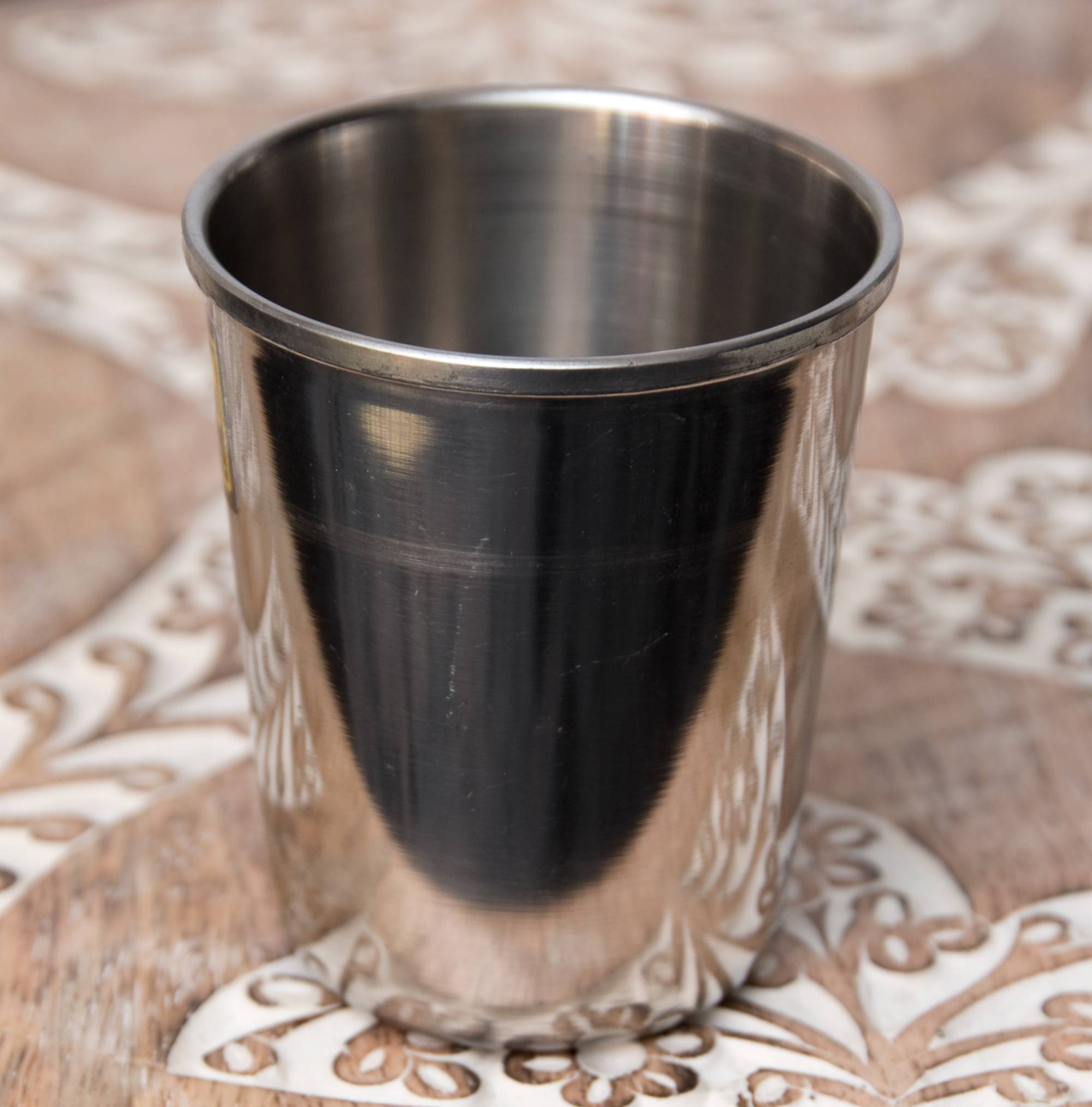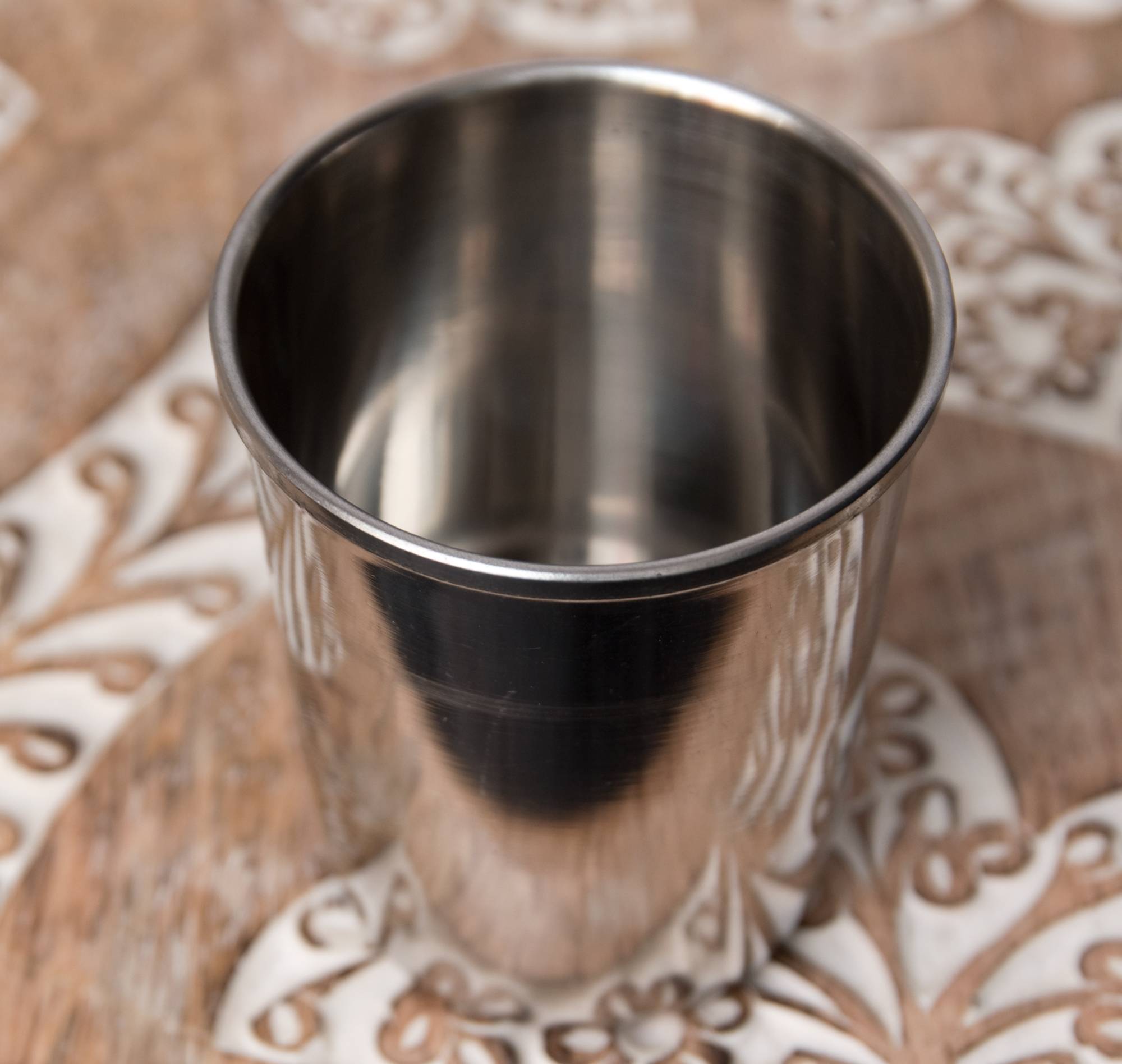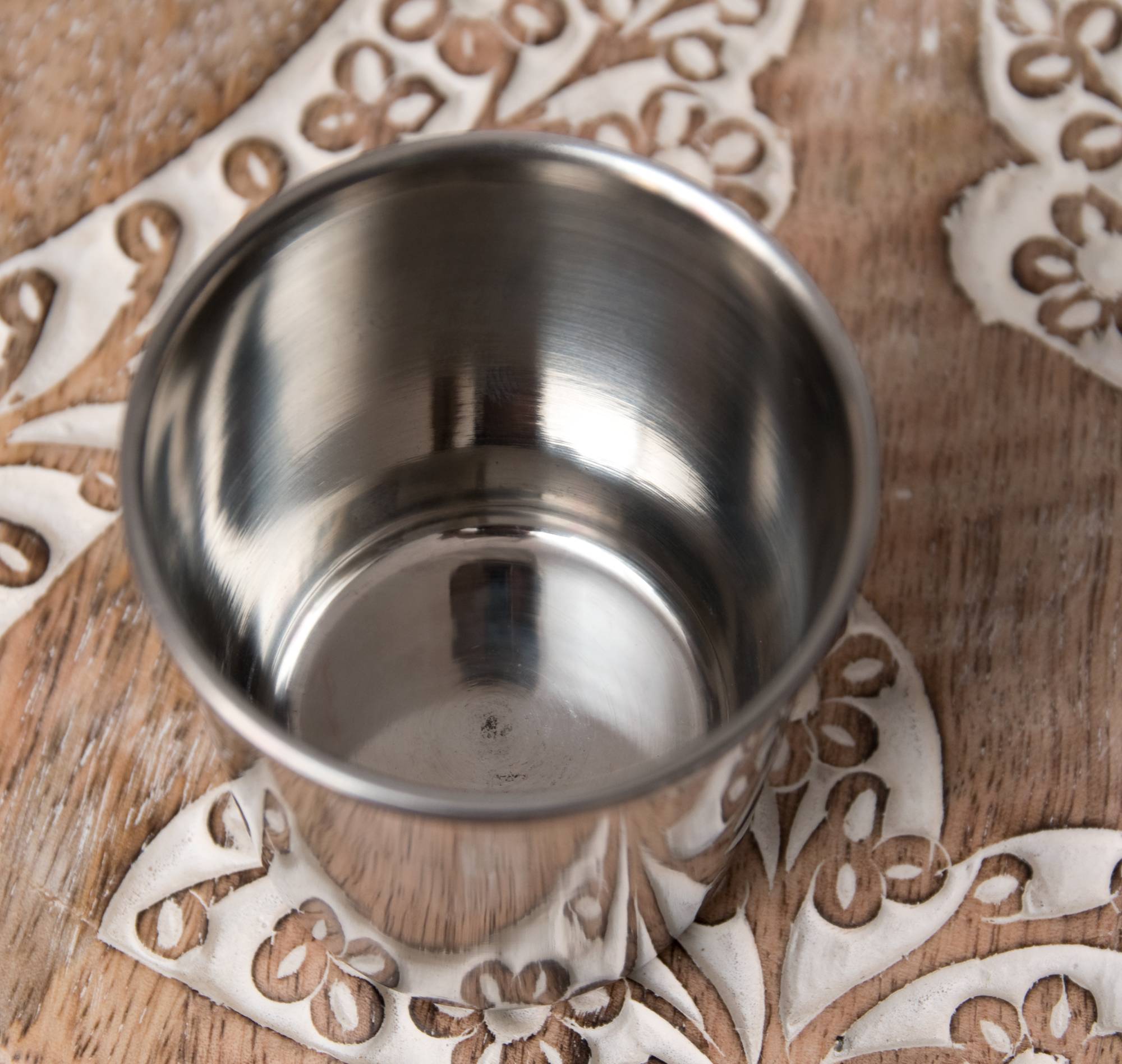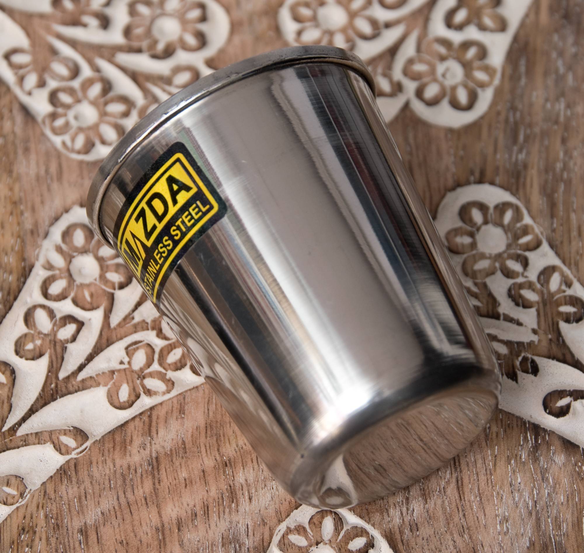 ステンレスで出来たチャイカップです。小ぶりなコップですが、インドで使用されているチャイカップとしては、だいぶ大きめの部類に当たります。こちらは、カップの底に金属球が入っており、振ると鈴のような澄んだ音が響き渡ります。氷が入っていなくても氷が入っているような気分になれる、遊びココロのあふれた一品です。楽しいティータイムをより楽しくしてくれること間違いなし!是非、ご家庭におひとついかかでしょうか?