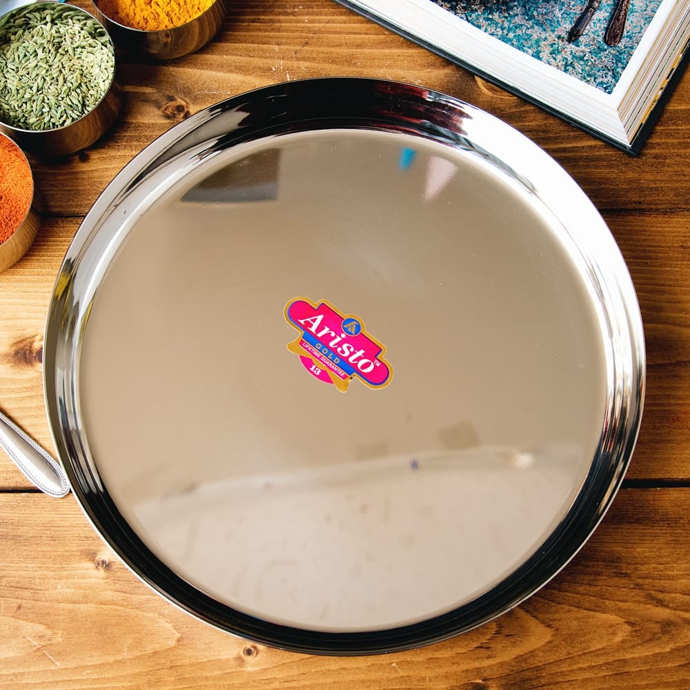 インド料理といえばこれ!ステンレスの丸皿です。