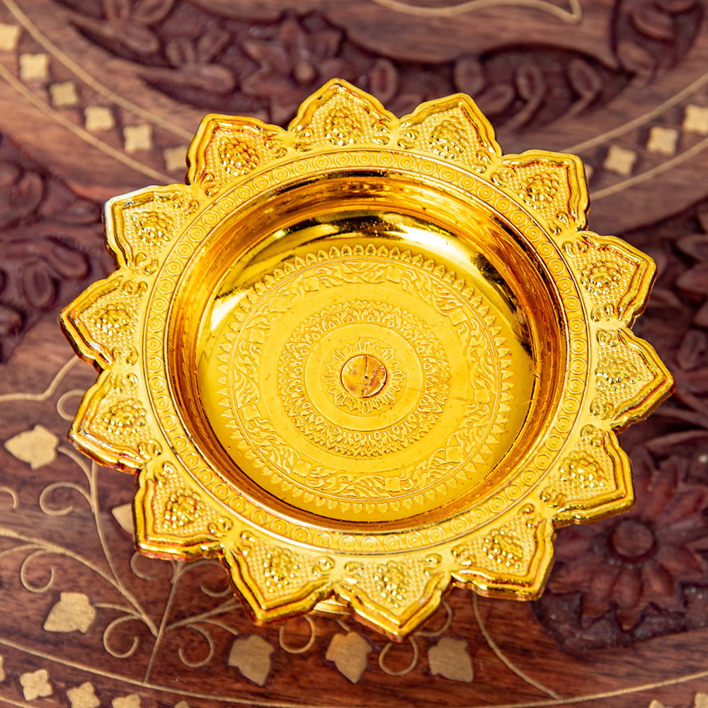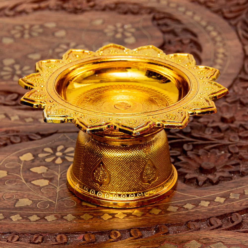 仏教国タイで日常的に使われているお供え物置きです。お祈りするときに、花びらを載せたりします。タイならではの美しい装飾がデコボコのエンボスになって入っていて大変美しい一品です。■物を引き立てる飾り皿