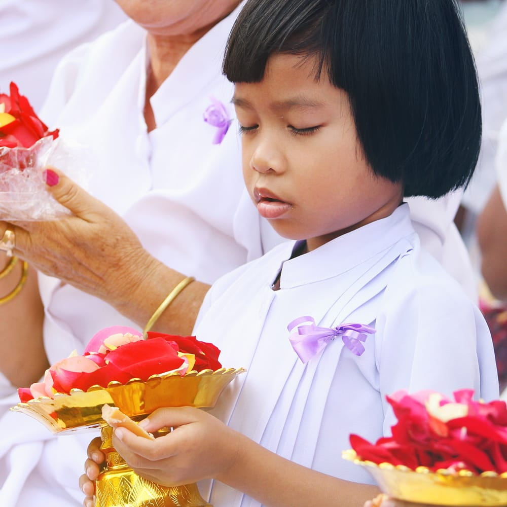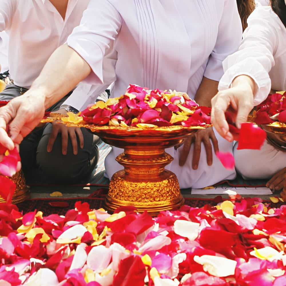 仏教徒が多いタイでは、お祈りのときなどに、花びらを入れたりします。