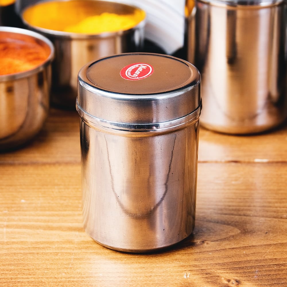 ![【3個セット】ステンレスのマサラケース・小物入れ-3号[約7.2cm×5.3cm 120ml] 4 - スパイス以外にも、小物入れとしてとっても素敵!](https://www.tirakita.com/Zakka/Photos/set_food_936_4b.jpg)