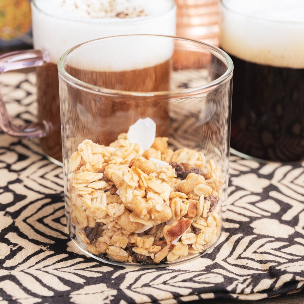 コーヒーや紅茶、ハーブティーなどへ。このグラスは、電子レンジでも使用可能な耐熱ガラス。直火にもかけられます。オーブンを用いた菓子作りまで幅広い用途へご使用いただけます。