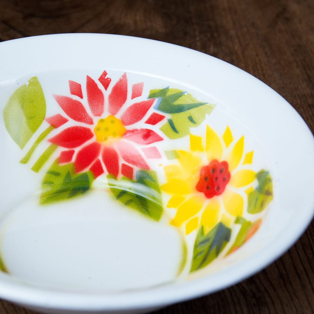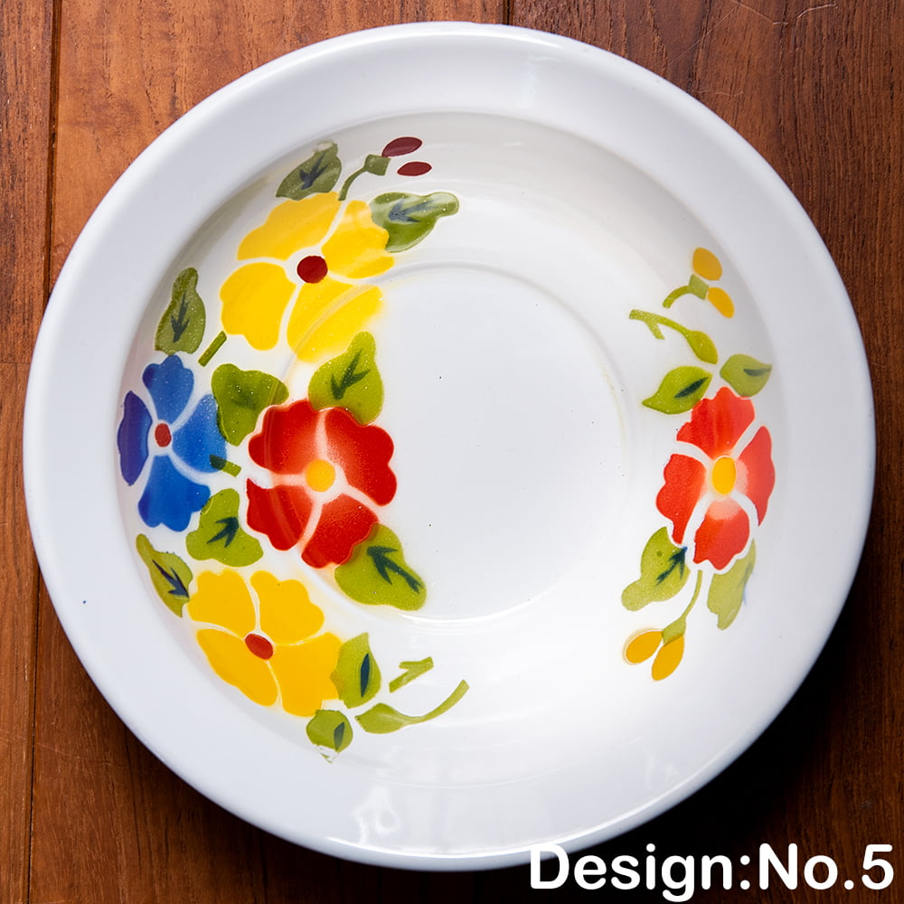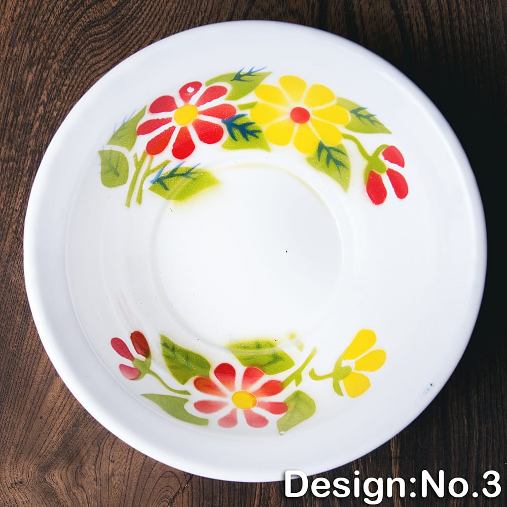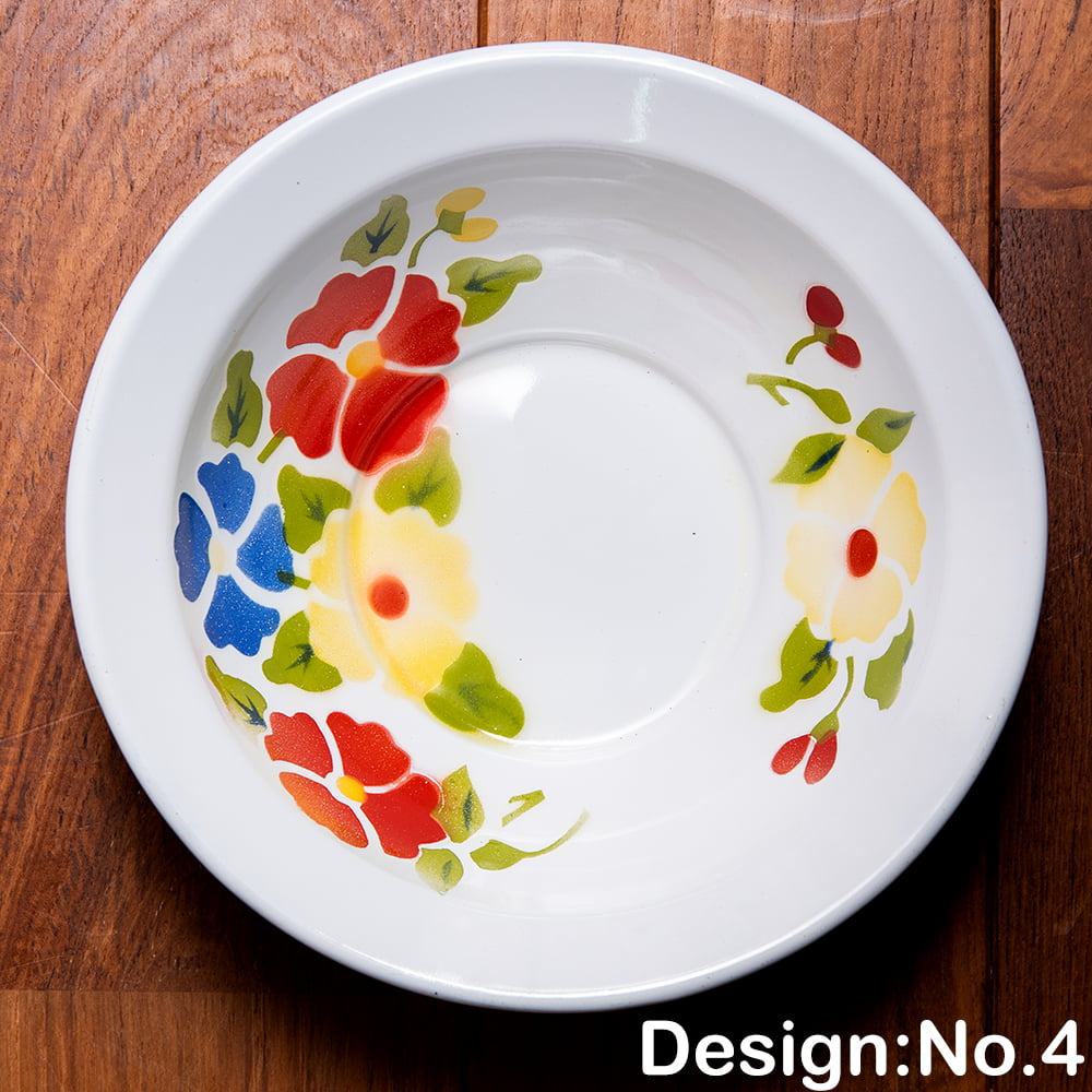 あたたかみのあるレトロなデザインがたまらない。タイからやってきたホーローの飾り皿です。ベースは白色で、その上に色鮮やかなフローラル系のペイントが施されているのが特徴。昔の花柄がプリントされた、お鍋などの調理器具を彷彿とさせます。昭和レトロ感が溢れるデザインが素敵です。
