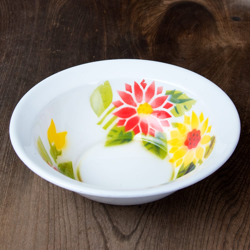 【6個セット】タイのレトロホーロー 花柄飾りボウル RABBIT BRAND〔約21.2cm×約6.4cm〕