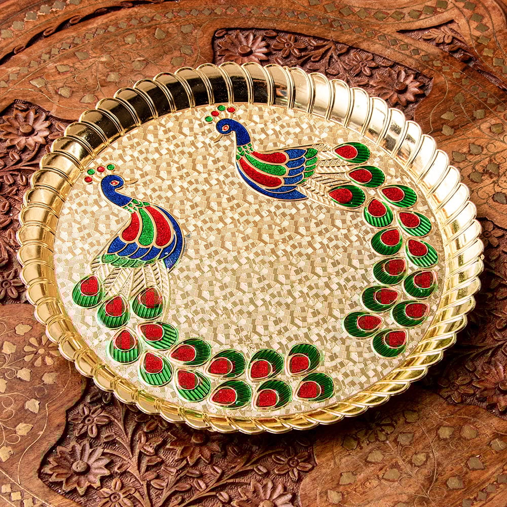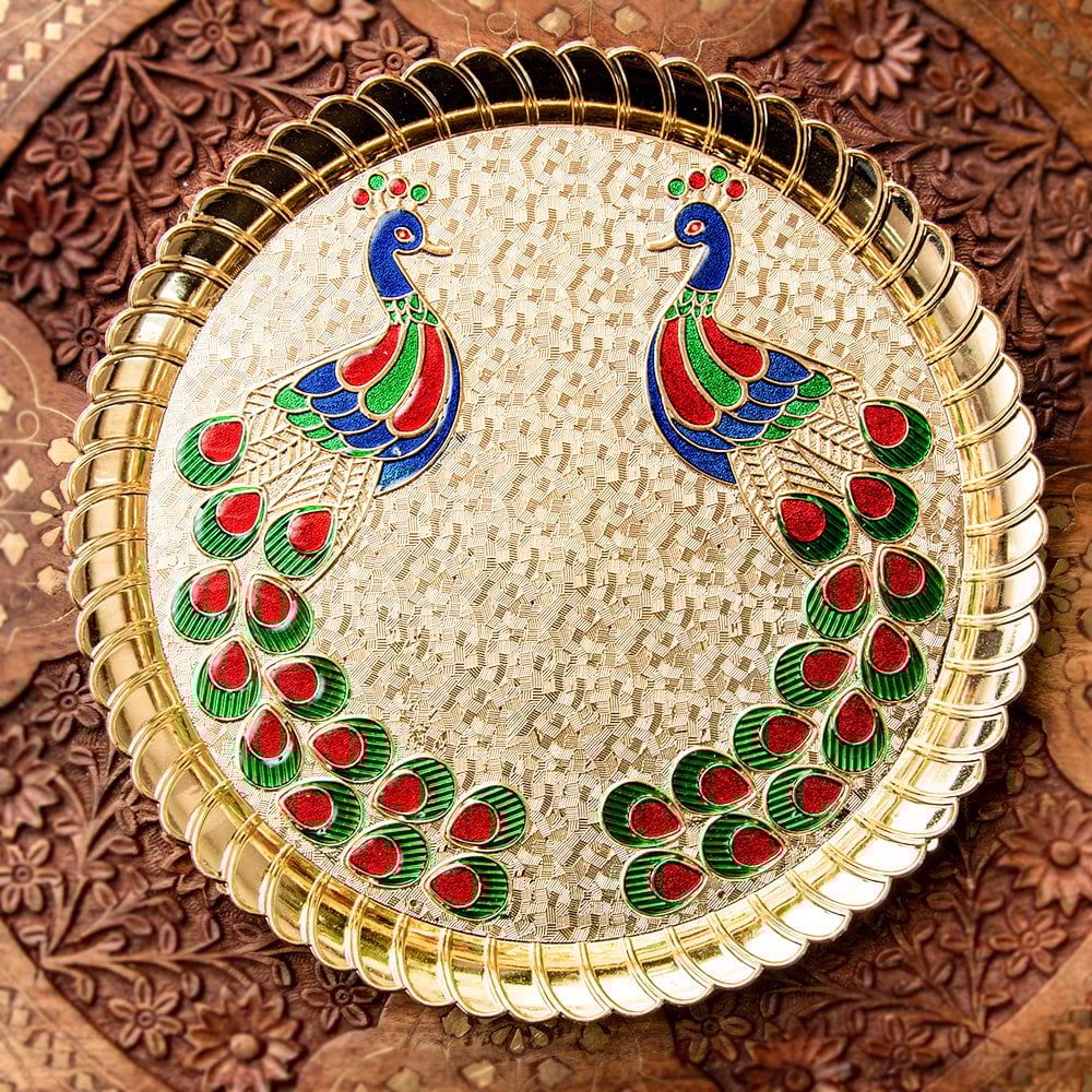 【6個セット】【約25.5cm】インドの礼拝皿 プージャターリー 孔雀 通販店