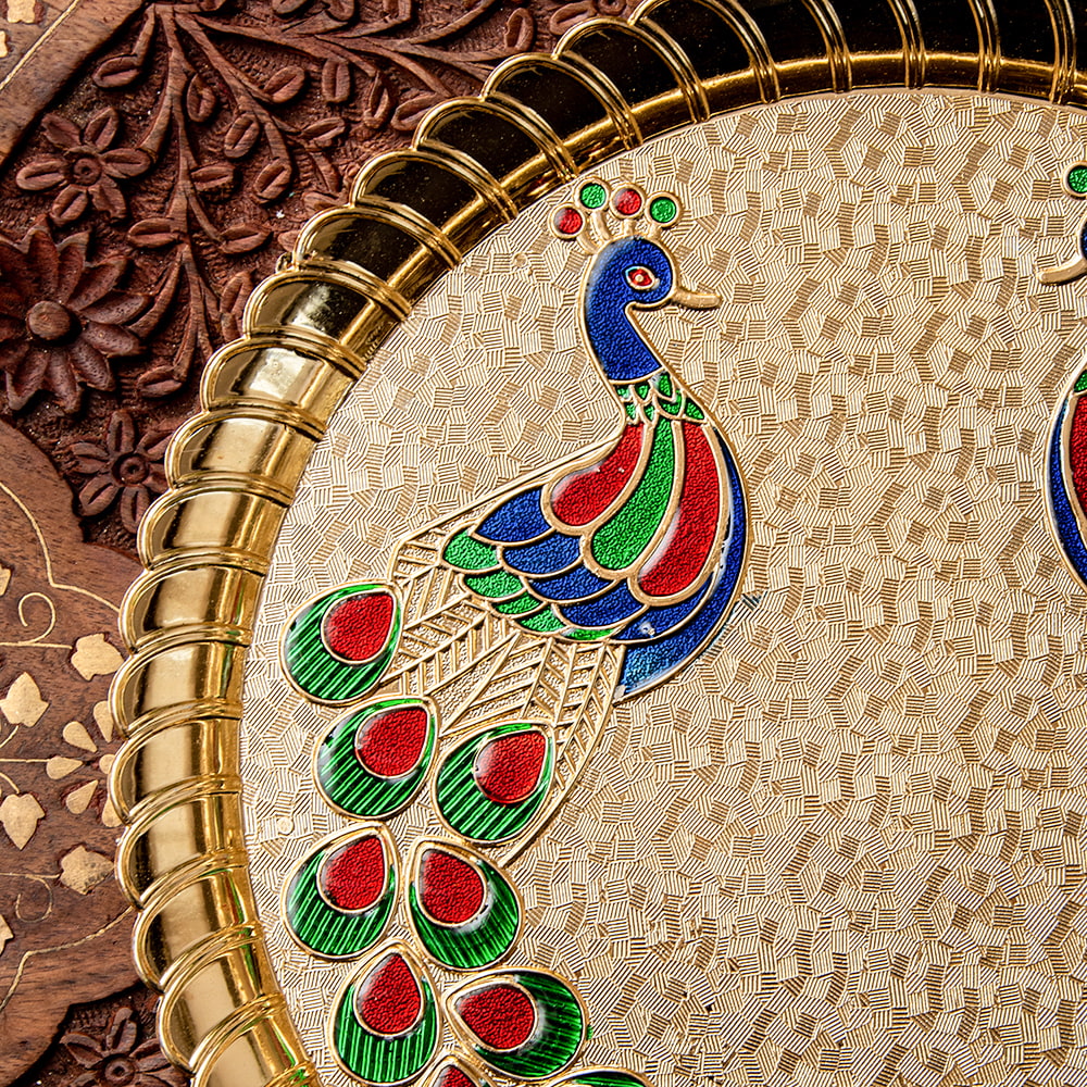 【約25.5cm】インドの礼拝皿 プージャターリー 孔雀 x 6個