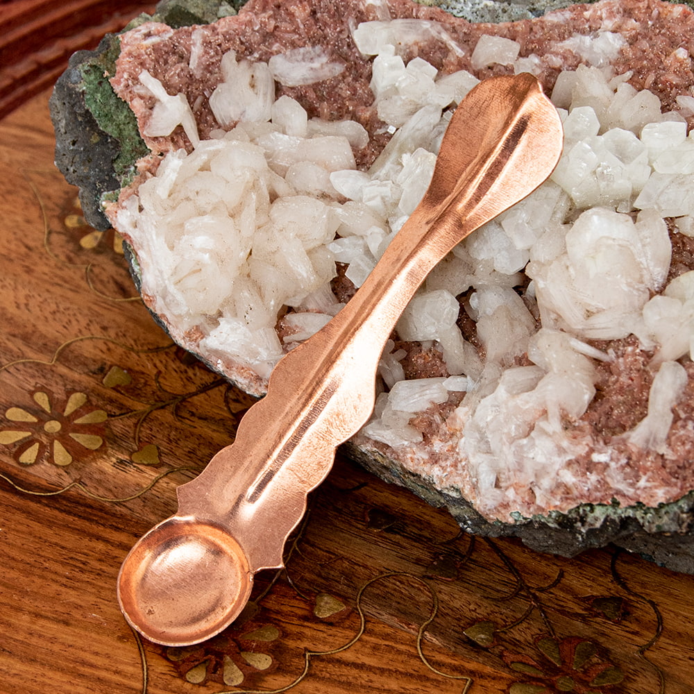 インドで礼拝用に使用されている銅製のスプーンです。銅はヒンドゥー教では聖なる金属として考えられ、寺院や祭壇などで使用されます。■銅製です