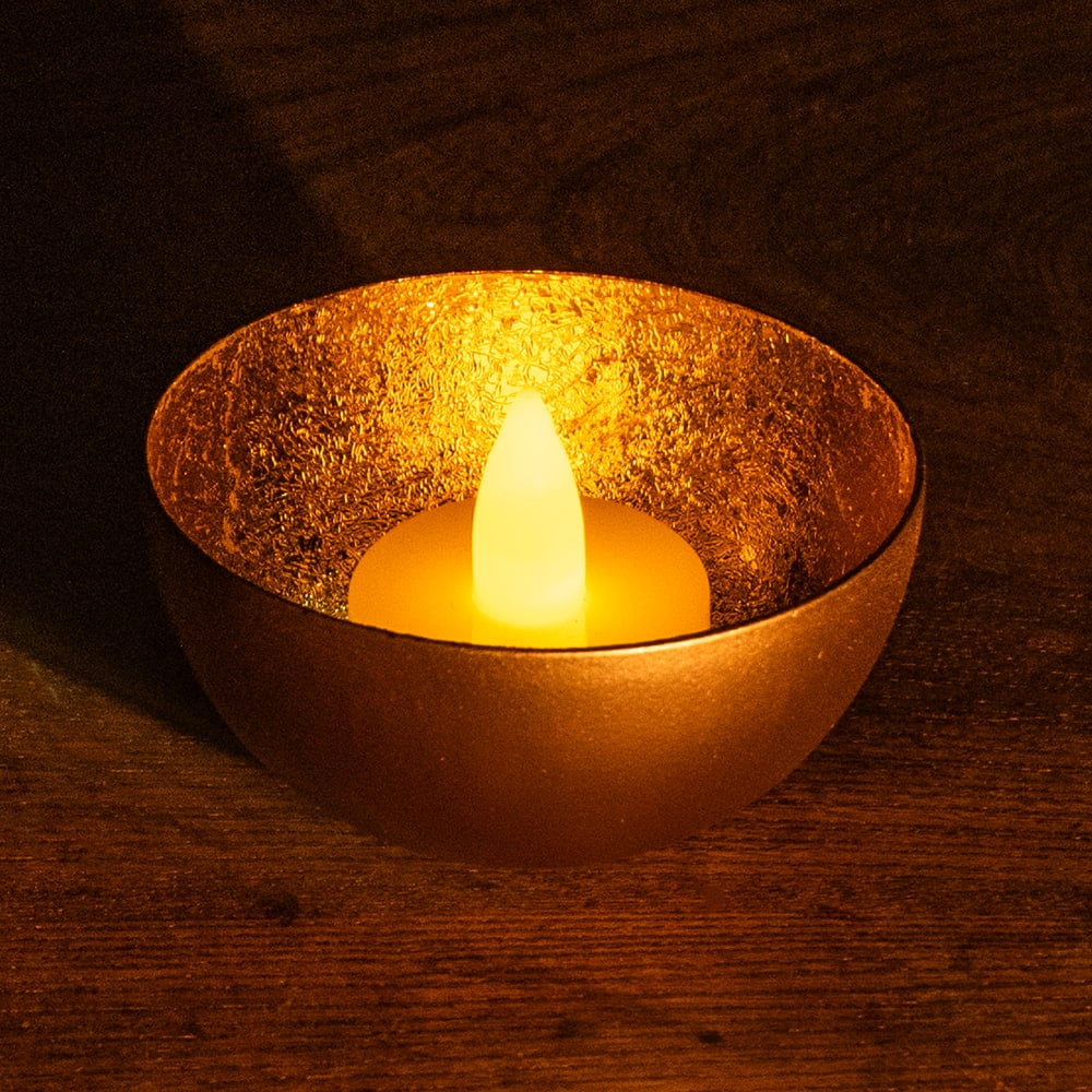 キャンドルボウルとしての使用例になります。LEDキャンドルライトを使用してみました。