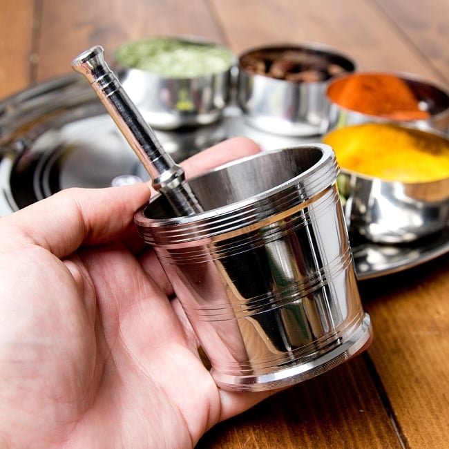 ホールスパイスをつぶし、自分好みのマサラが作れるスパイスグラインダーです。スパイスを潰すときの熱が金属に吸収され、熱で香りが壊れないので、より香り高い料理ができます■スパイスを自分でつぶす理由