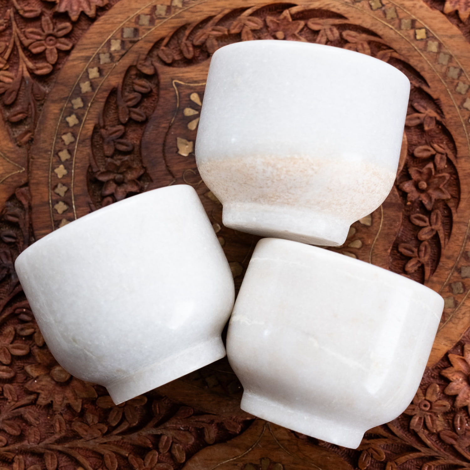 手のひらに収まるサイズの、大理石のすり鉢。たくさんの量は入りませんが、手の中で作業できるので扱いやすかったです。