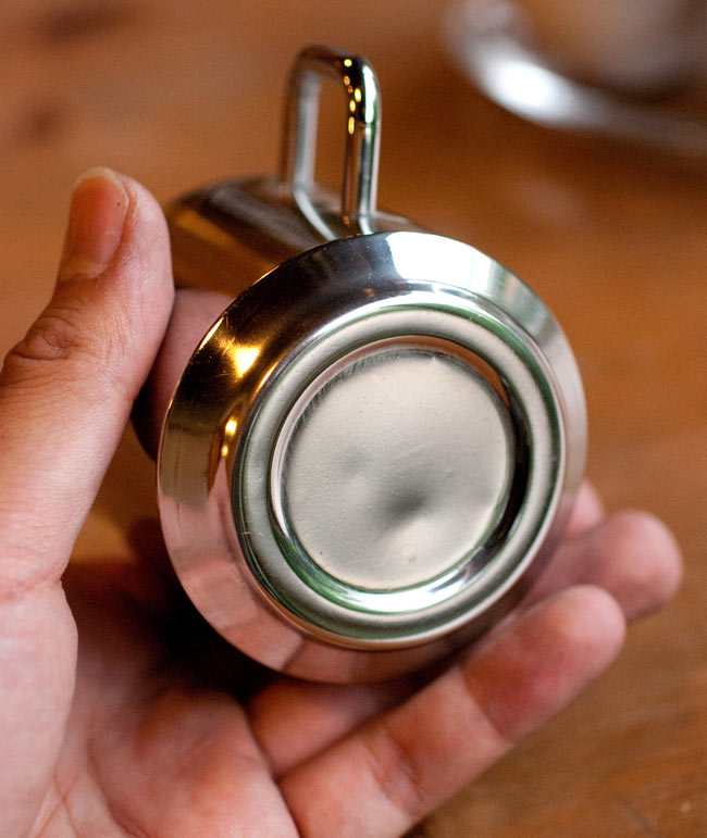 インドの取っ手付き!ステンレスマグコップ【高さ:5.2cm×直径:6.2cm】