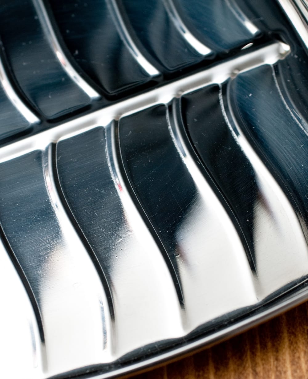 インドのステンレス製 バナナリーフプレート[約22.5cm]の商品写真 4枚目 フチの部分の写真です