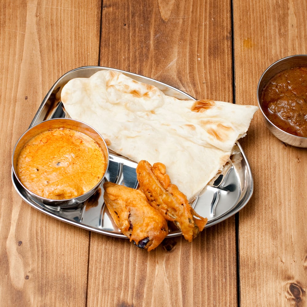 インドのステンレス製 バナナリーフプレート[約22.5cm]の商品写真 7枚目 こちらの商品の使用例になります