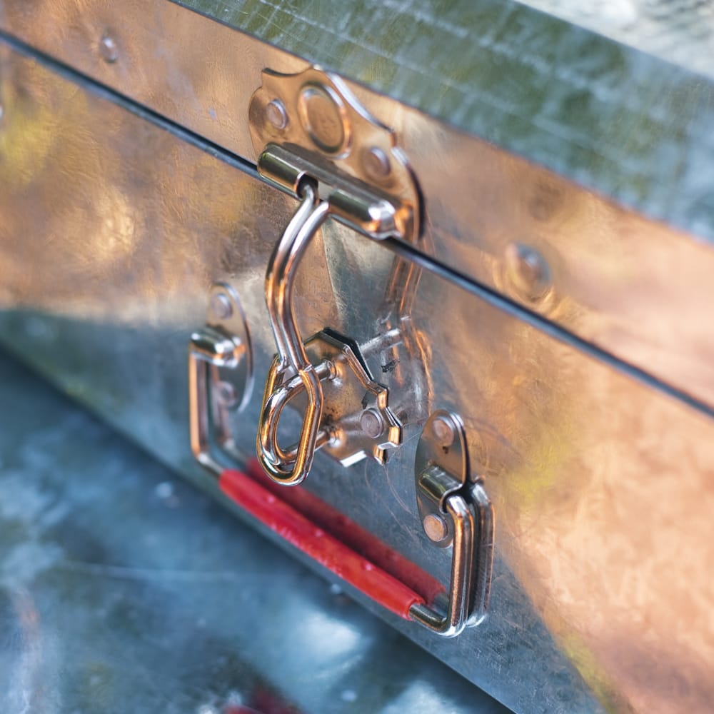 インドで荷物を運んだりする際に、使われているアルミケースです。ネパールでも似たケースが使われているのですが、嫁入り道具を運んだり、そんな用途にも使われることがあるそうです。その他、海外へ荷物を輸出するときに、壊れやすいものをこのケースに入れて保護したりもします。アルミ製でケースが軽いので、持ち運びも楽々です。
