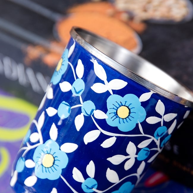 ![どこか懐かしいレトロテイスト 手描きカシミールペイントのチャイカップ[直径:約6.4cm x 高さ:約7.5cm ] 7 - 中はステンレスのままなので、安心してご使用いただけます。](https://www.tirakita.com/Zakka/Photos/id_tblwr_811_7b.jpg)