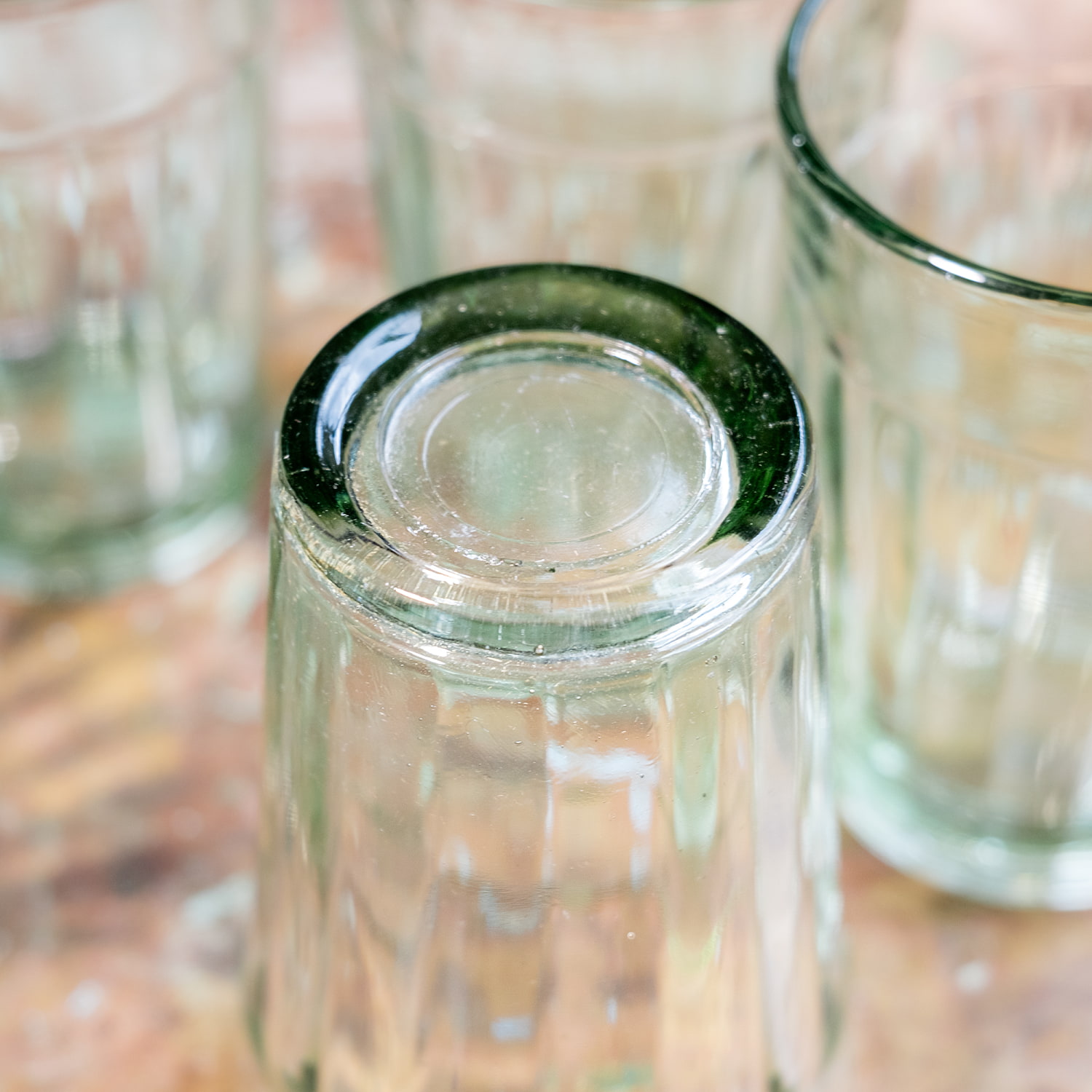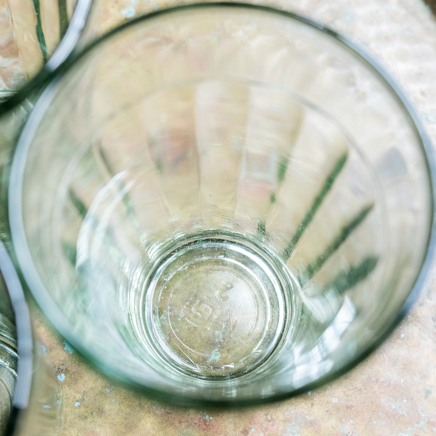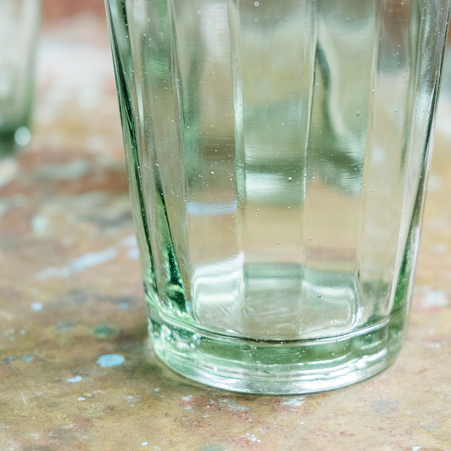 レトロな風合いでグリーンがかっていて、気泡も見られる、という、日本では逆に手に入りにくい再生ガラスのグラス、素晴らしいです。