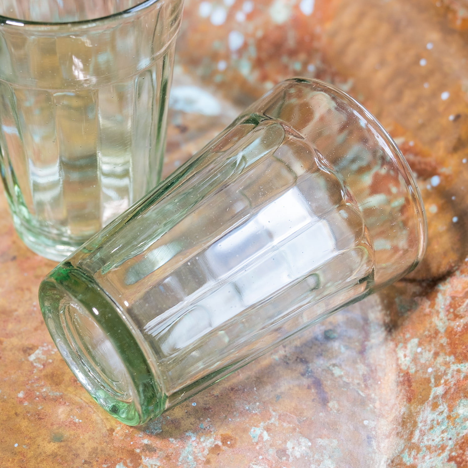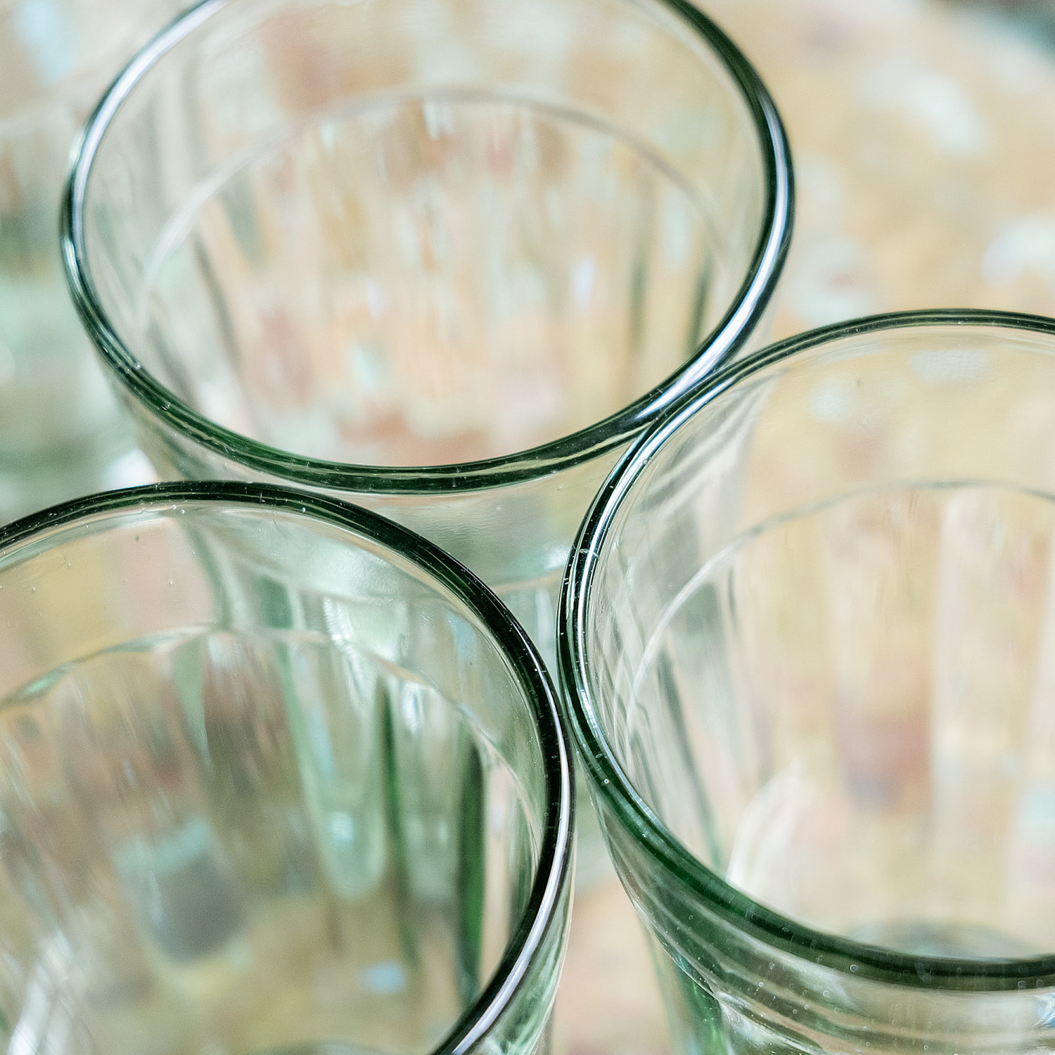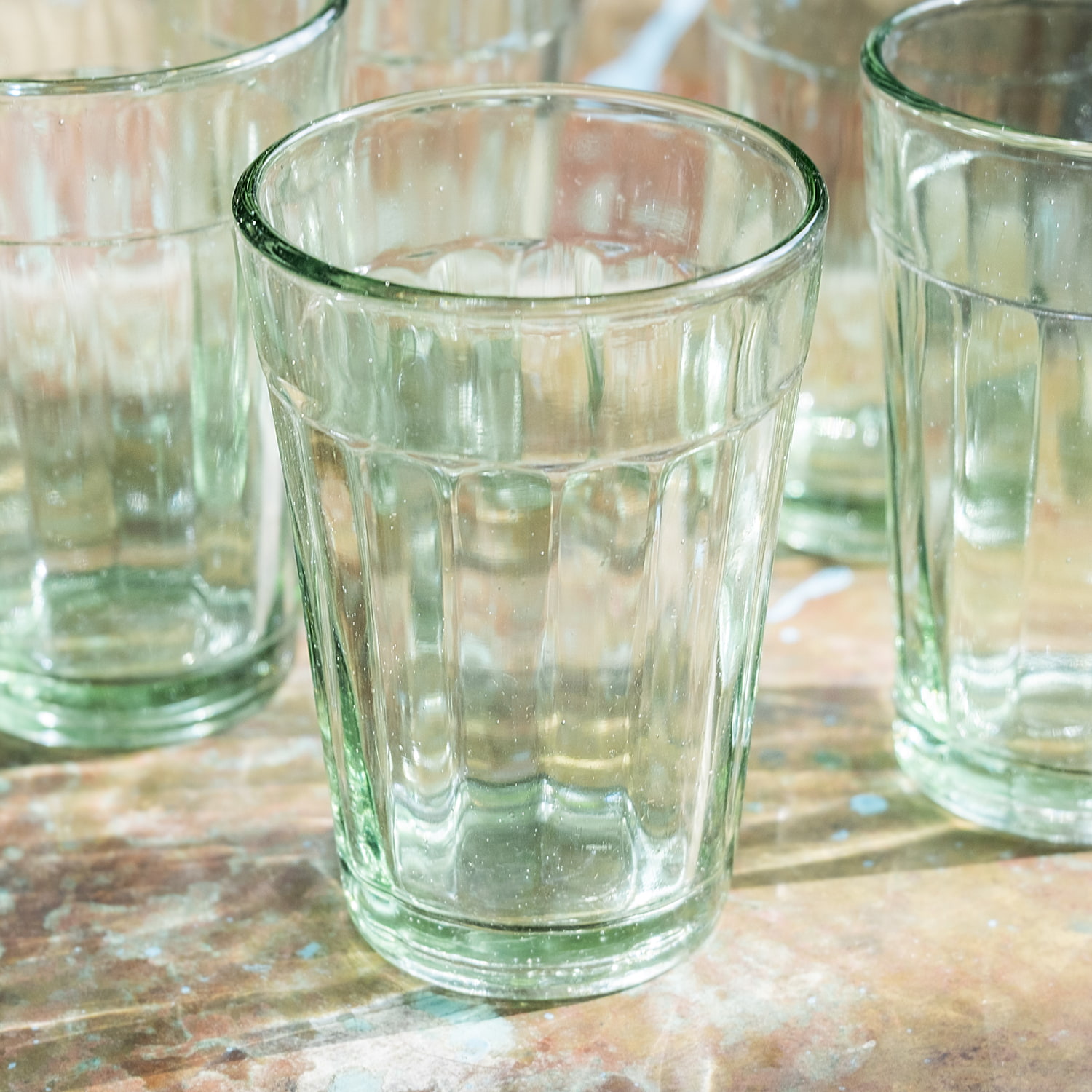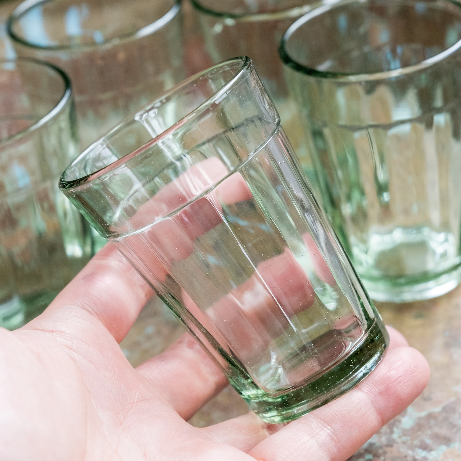 レトロな風合いでグリーンがかっていて、気泡も見られる、という、日本では逆に手に入りにくい再生ガラスのグラス、素晴らしいです。