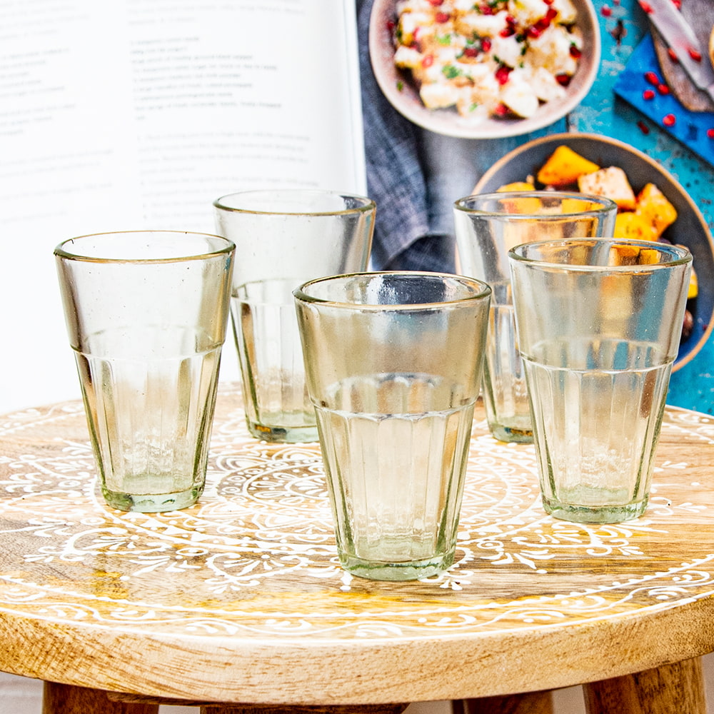 インドの大聖地、バラナシのチャイ屋さんが毎日使っているチャイコップ。手になじむ大きさ、ほんのりぬくもりが伝わるガラスの厚み、手作りが伝わるガラスの中の気泡。長く使っていただける一品です。| おことわり | 記載の容量は縁まで水を入れた際の参考容量となります。こちらの商品は、インドの古い製造工程で作られた商品で、色の違いや形の違い、ガラスのムラや小キズ、表面のザラつき等が多少ある場合がございます。割れがある物など、実用に問題のある品は、不備品として検品時に弾いておりますので、ご安心くださいませ。 |