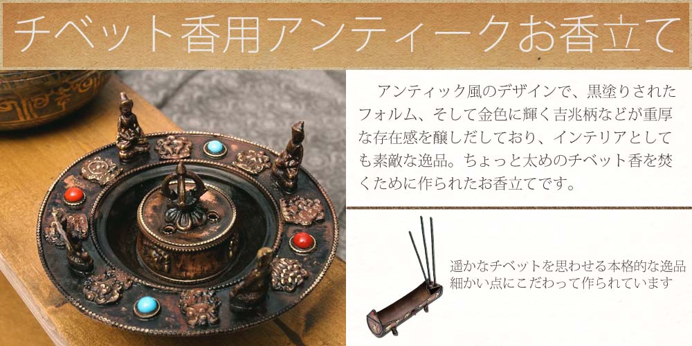 アンティック加工をされたチベット香用のお香立てです。独特のデザインで、インテリアとしてもお使いいただけます。 |