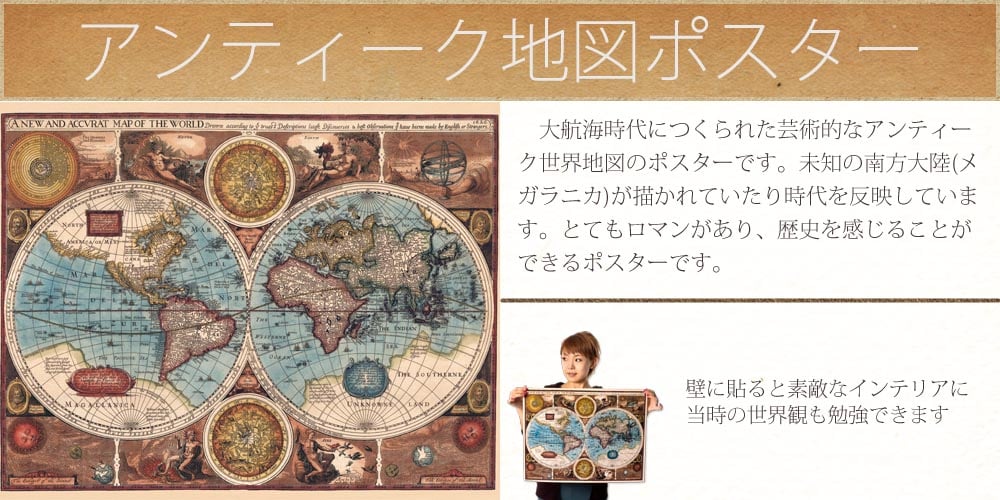 ![【17世紀】アンティーク地図ポスター[A NEW AND ACCVRAT MAP OF THE WORLD]【両半球世界地図】](https://www.tirakita.com/np_tanka/Photos/id_worldpos_4s.jpg)